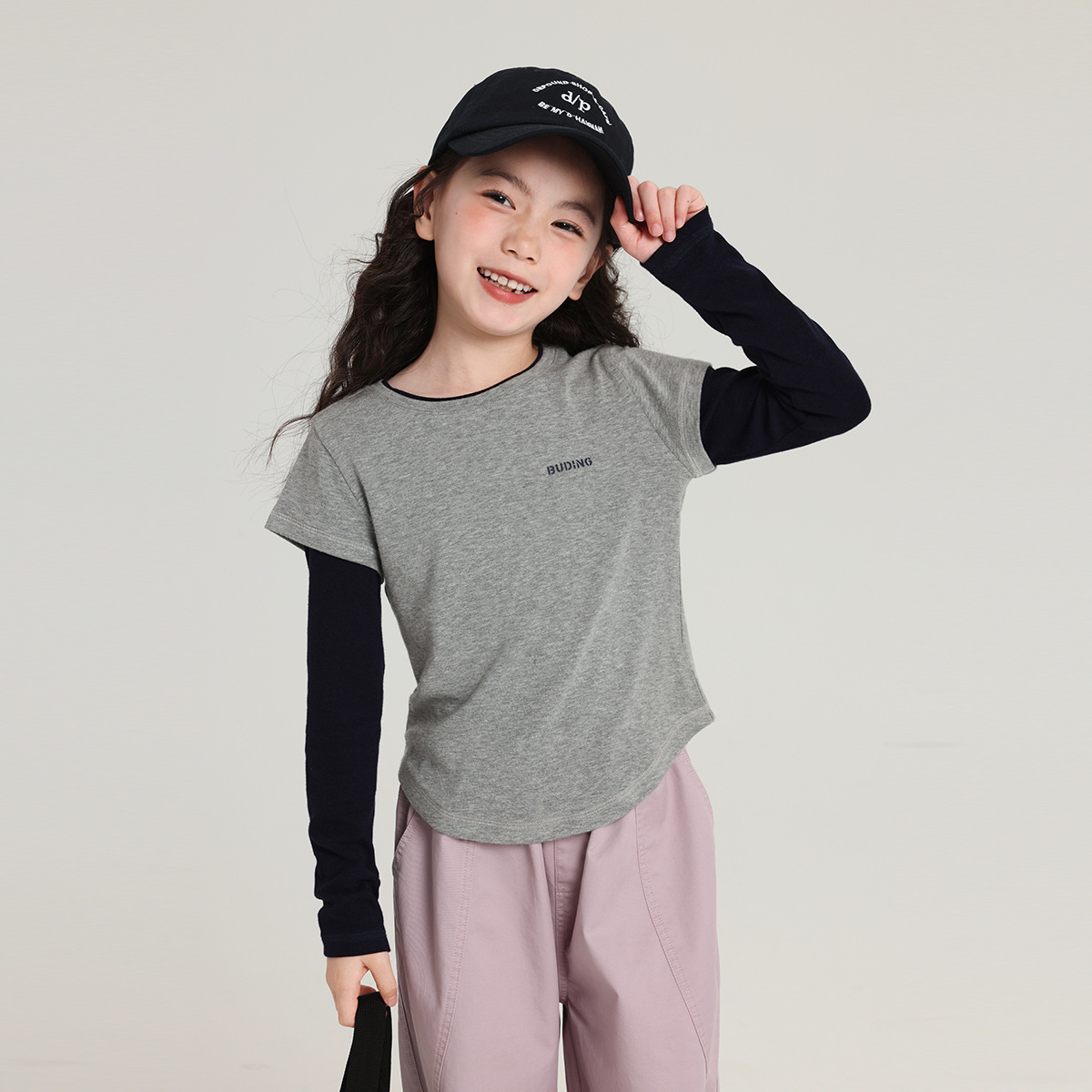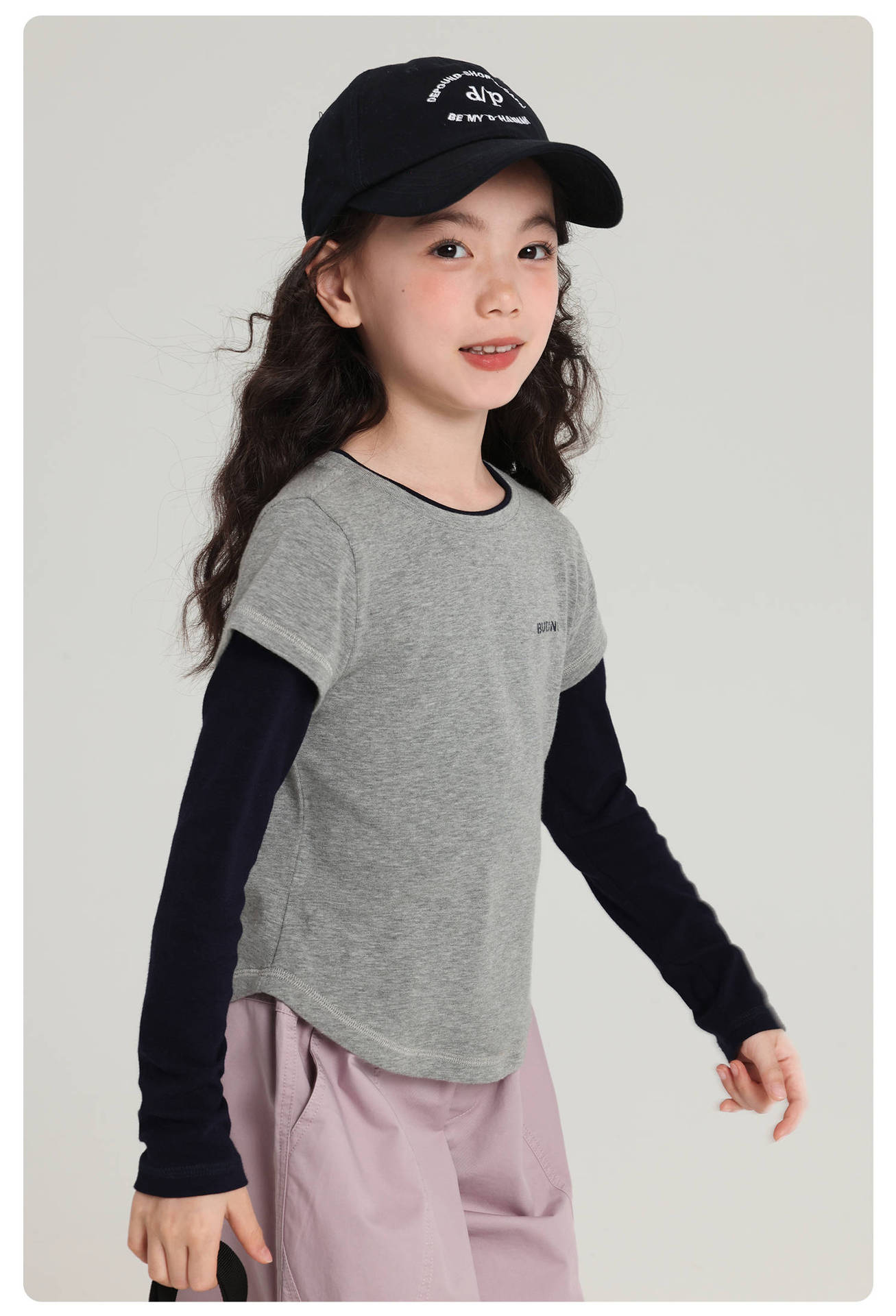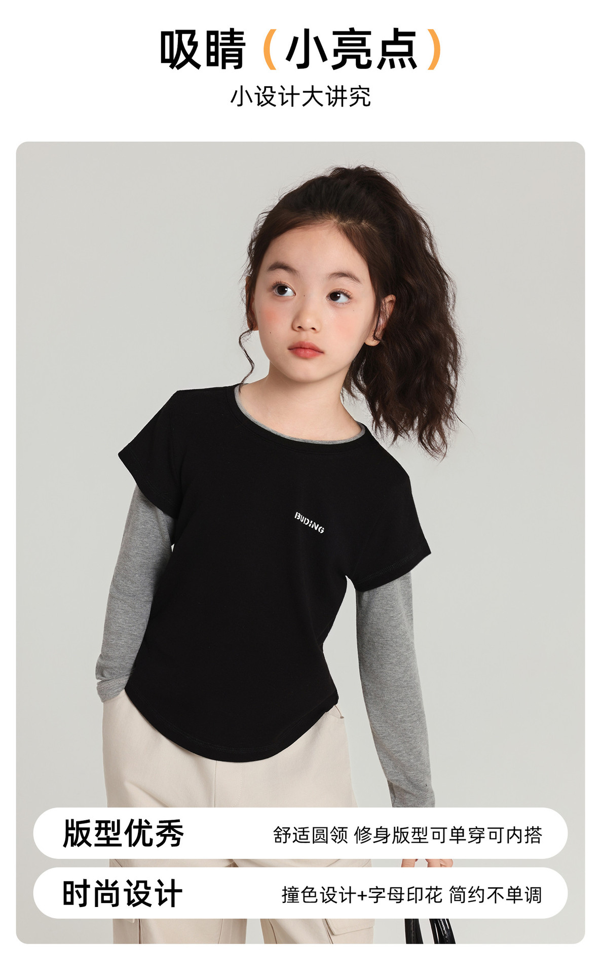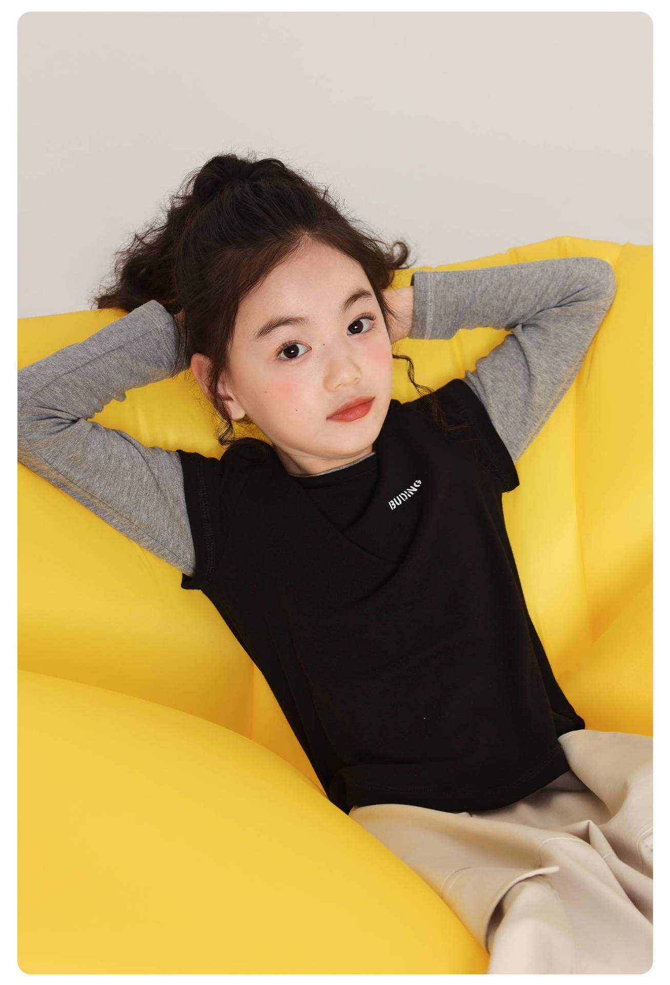 Pudding Haru 아동용상의 소녀 심플 긴팔 2025 가을 신작 아동용 가짜 투피스 캐시미어 바닥 셔츠스토어 가기