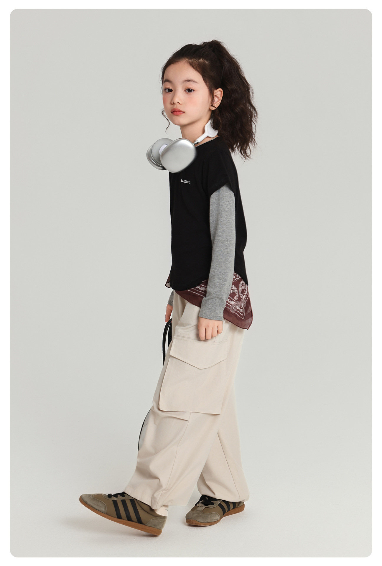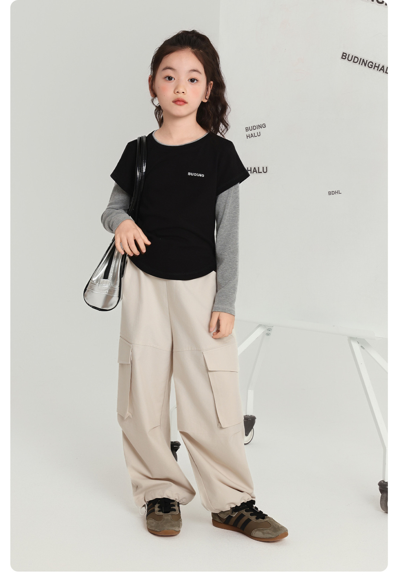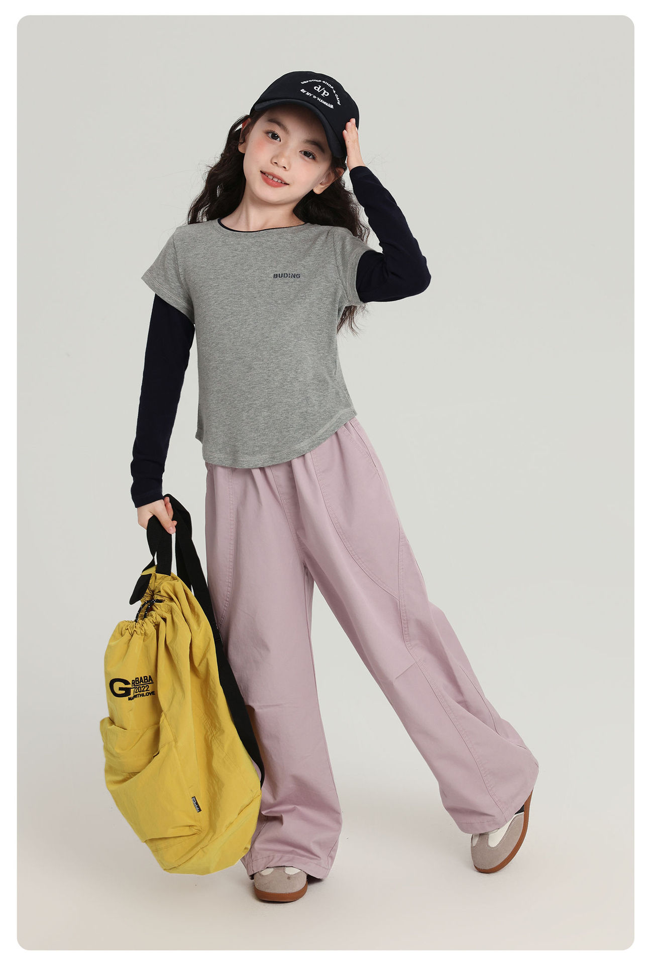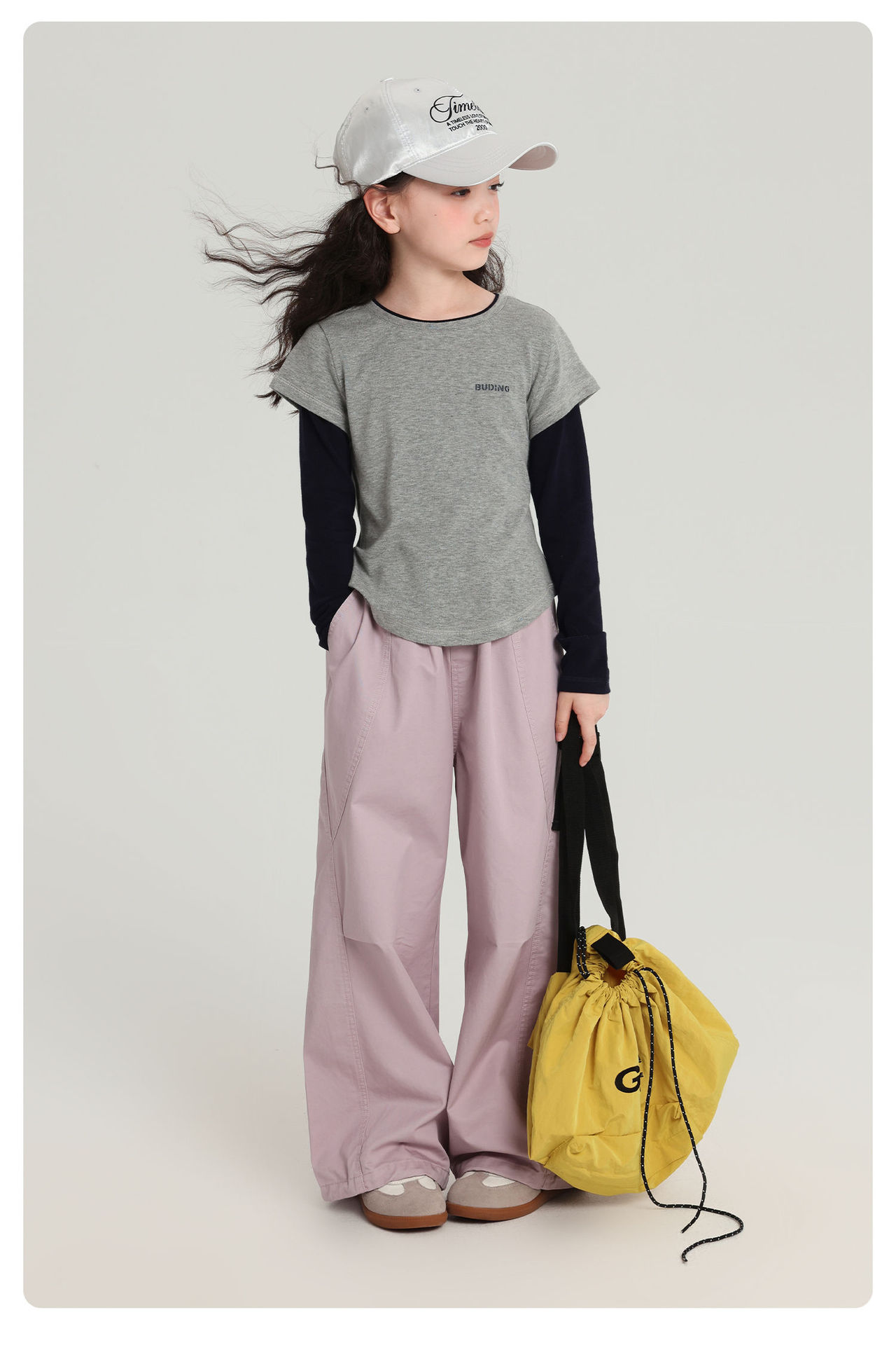 Pudding Haru 아동용상의 소녀 심플 긴팔 2025 가을 신작 아동용 가짜 투피스 캐시미어 바닥 셔츠스토어 가기