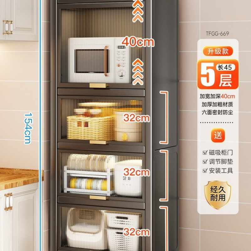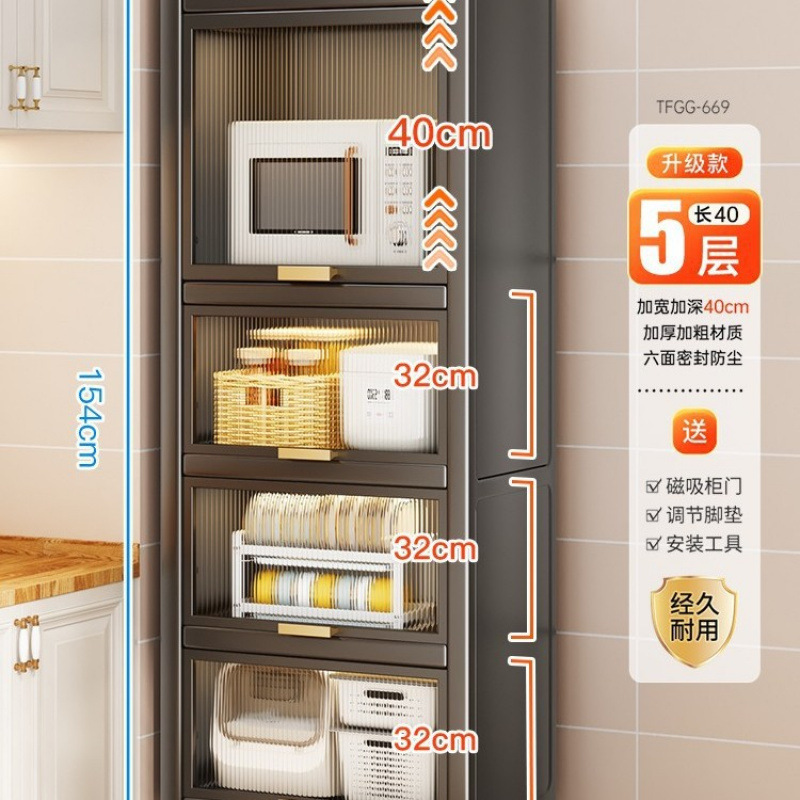 주방 수납 선반, 바닥에서 천장까지 이어지는 다층 수납 캐비닛, 다기능 수납 캐비닛, 전자레인지 캐비닛, 찬장