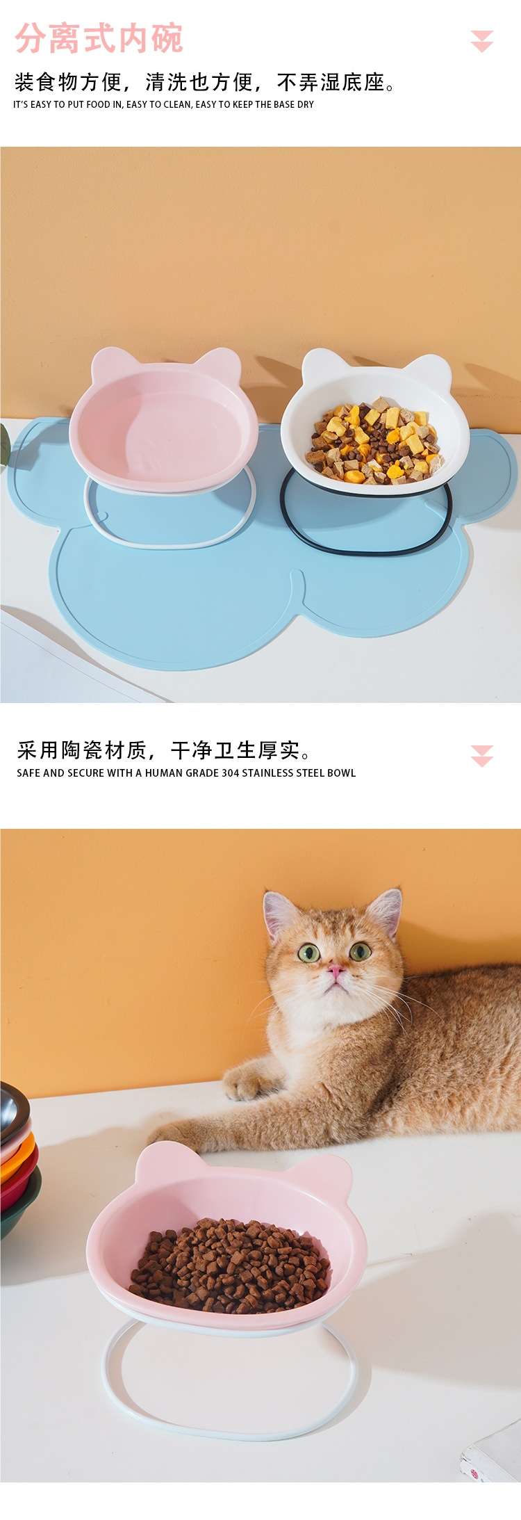 고양이 그릇 세라믹 고양이 사료 그릇 이중 그릇 개 그릇 먹고 마시는 개 그릇은 경추를 보호합니다 개와 고양이 그릇 애완 동물 용품
