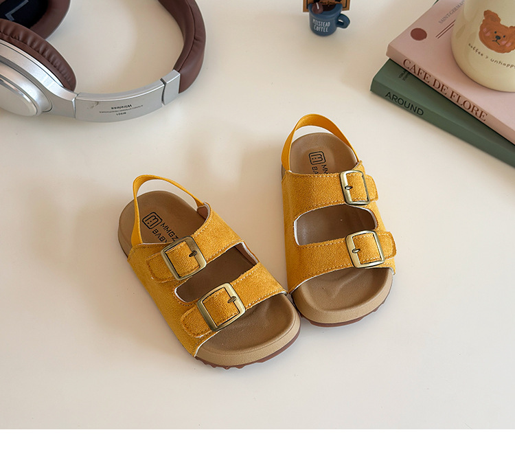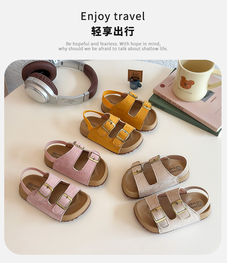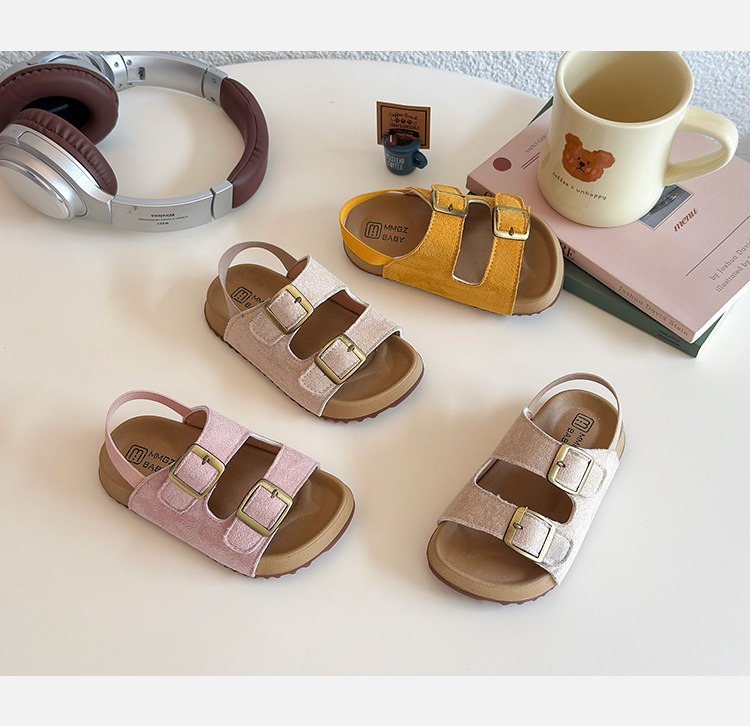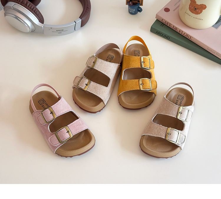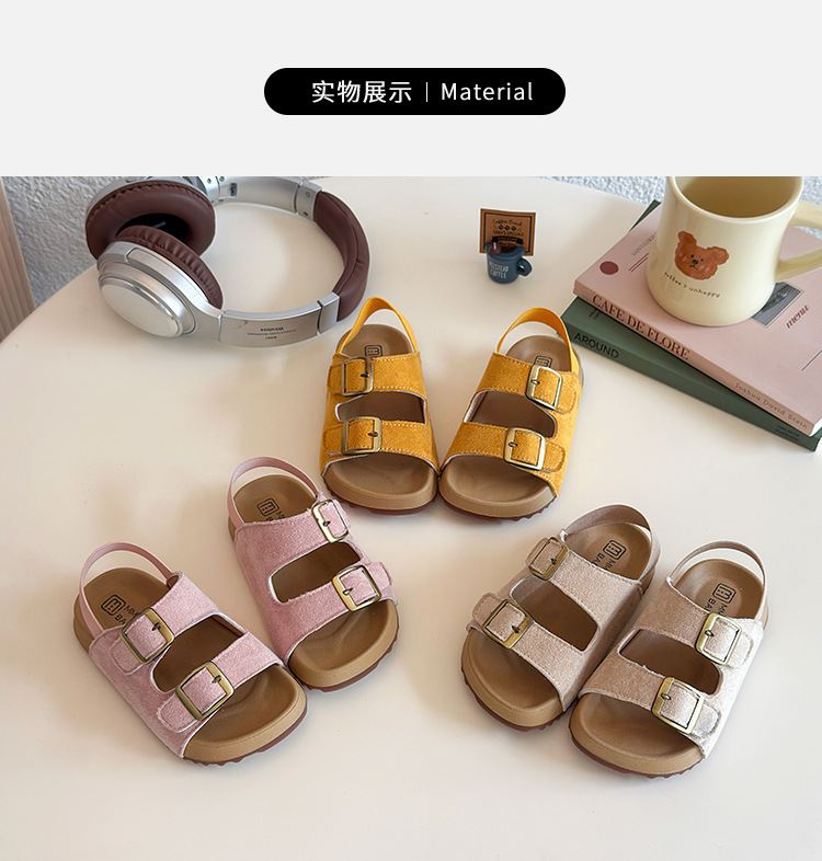2026년 여름 신상 여아용 캔디 컬러 캐주얼 샌들, 부드러운 밑창, 아기 패션, 더블 벨크로 버켄스탁 스타일
