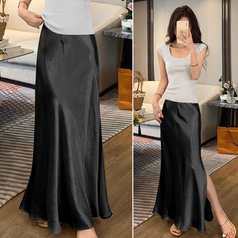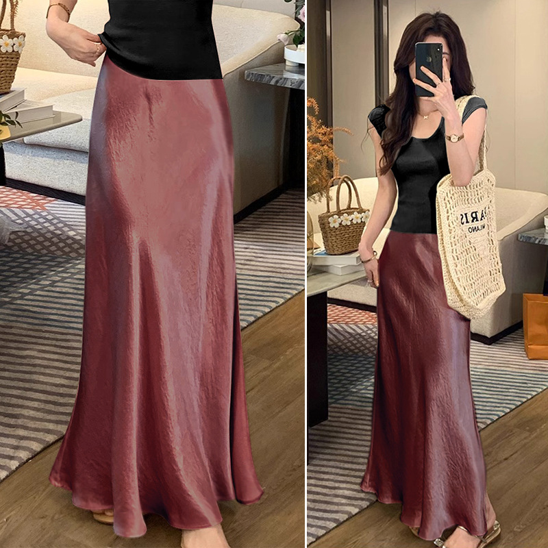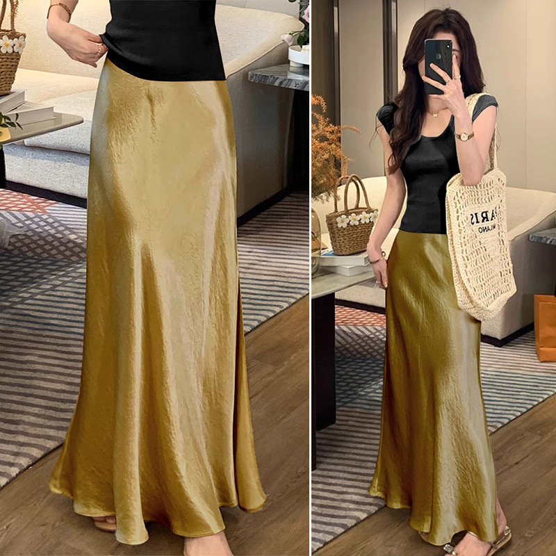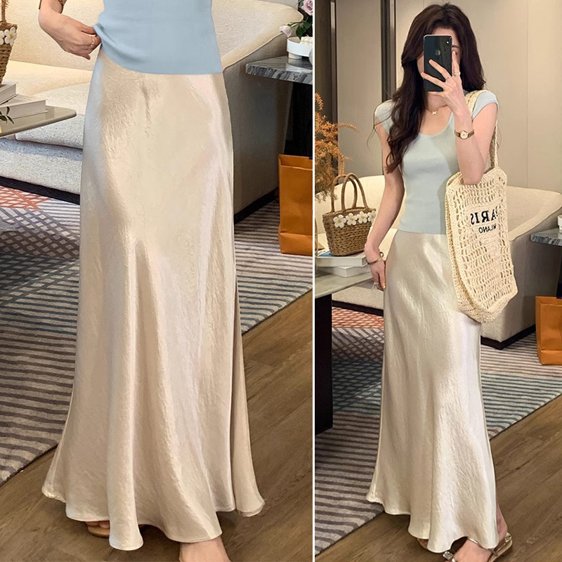 새틴 아세테이트 스커트 드레이프 피쉬테일 스커트 2025 신상 여름 힙 스커트 롱 스커트 얇은