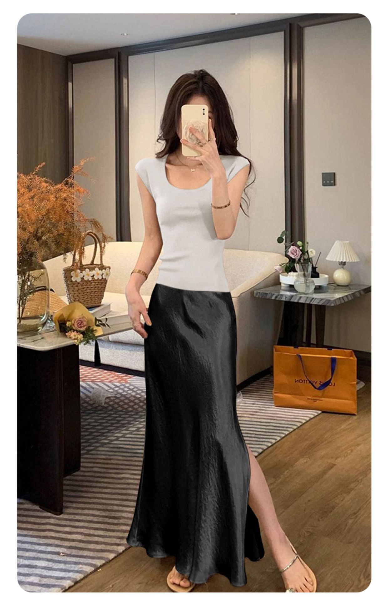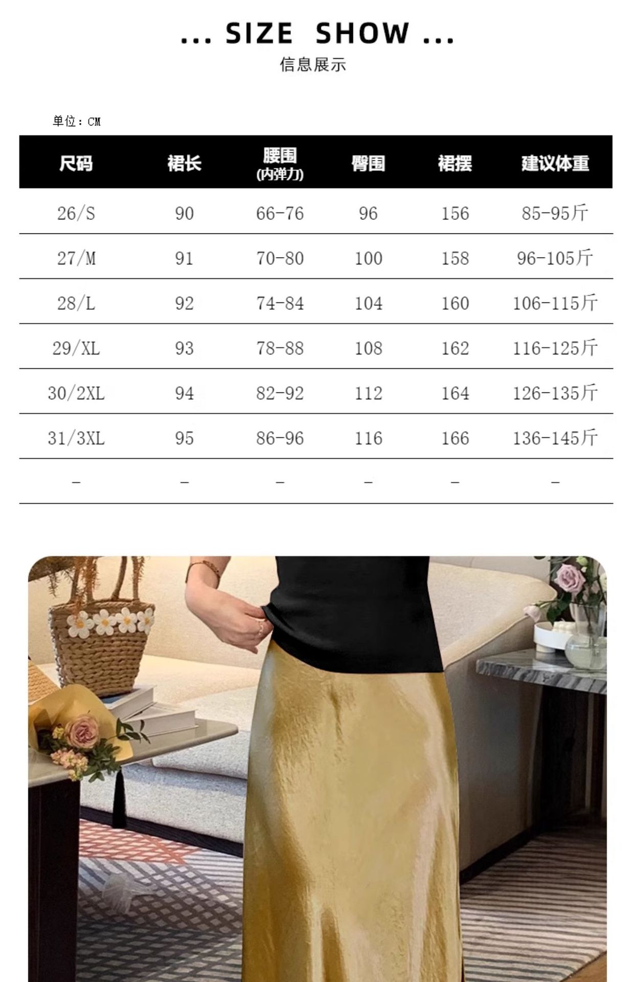 새틴 아세테이트 스커트 드레이프 피쉬테일 스커트 2025 신상 여름 힙 스커트 롱 스커트 얇은스토어 가기
