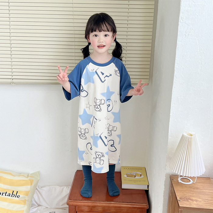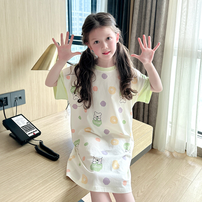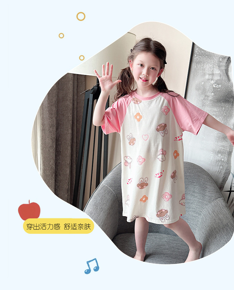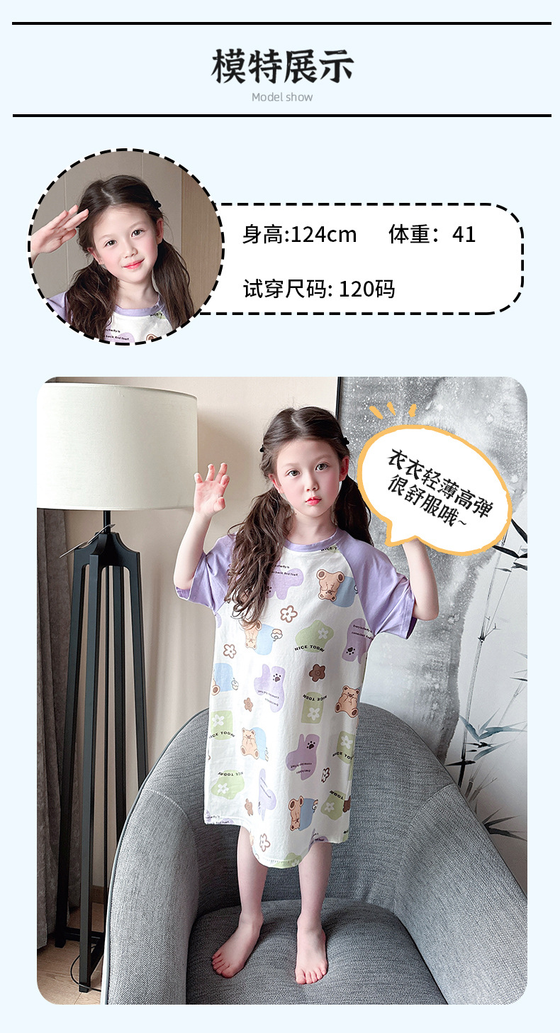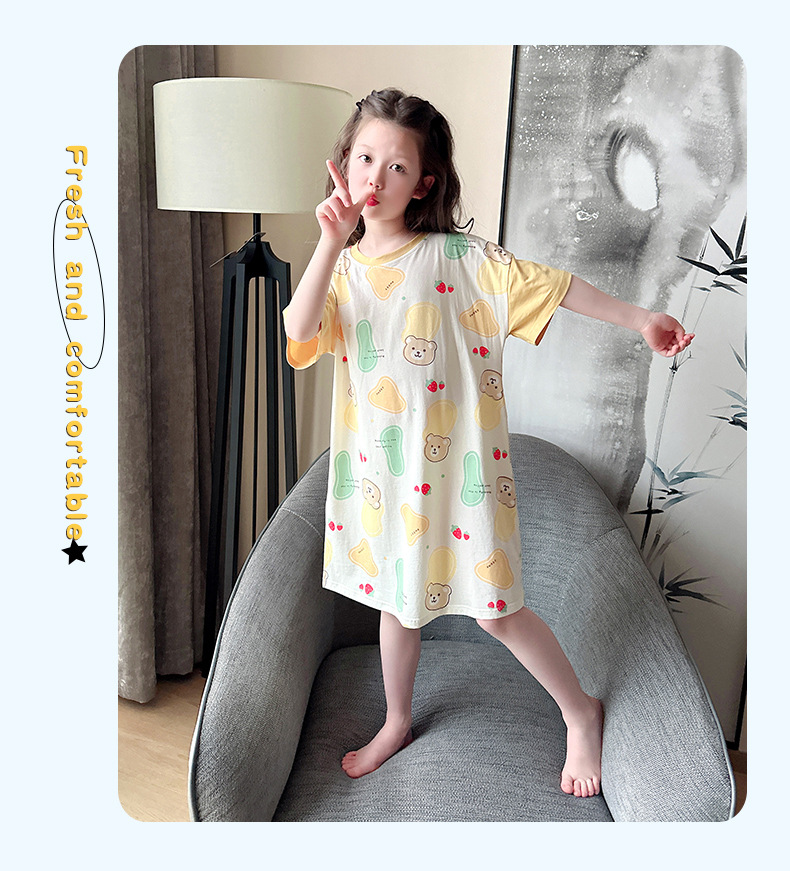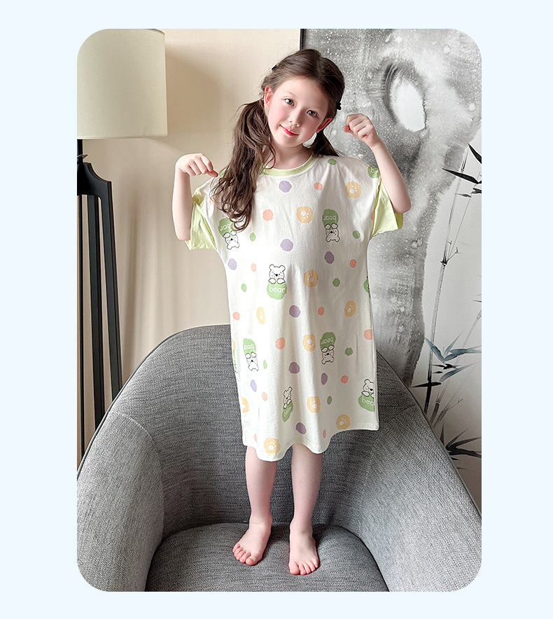아동용 잠옷, 여아용 잠옷, 얇고 시원한 면 A급 소, 중, 대 여아용 엄마와 딸 원피스 잠옷, 가정복스토어 가기
