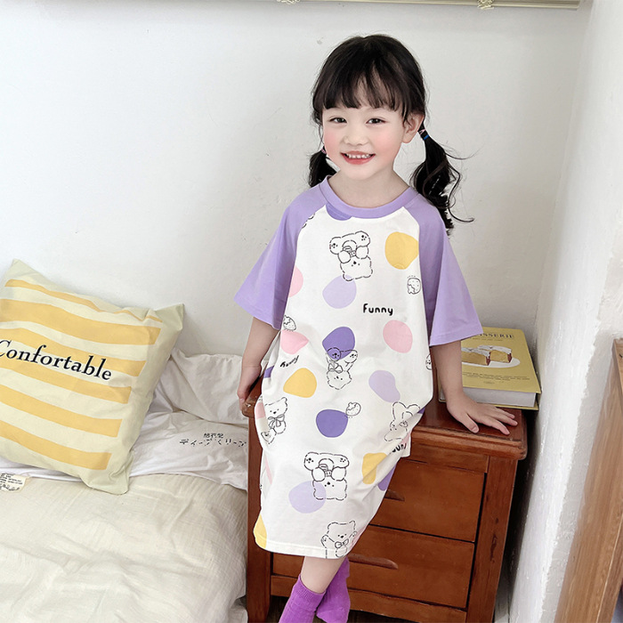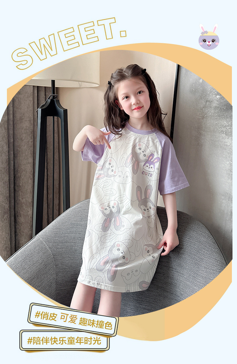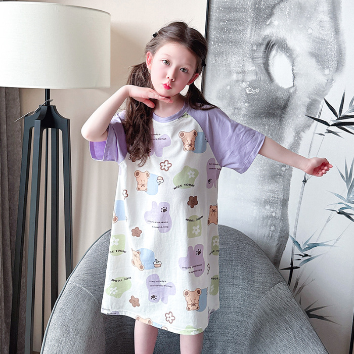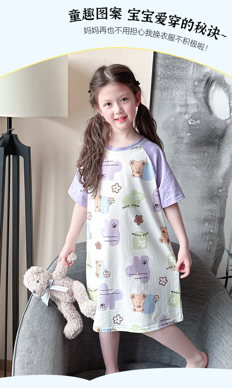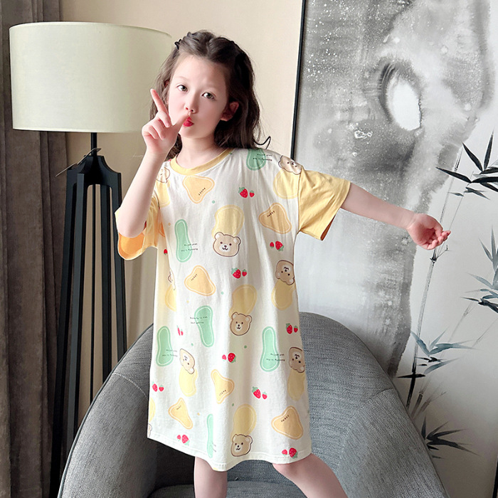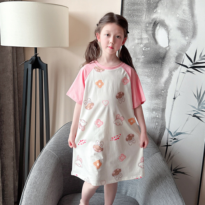 아동용 잠옷, 여아용 잠옷, 얇고 시원한 면 A급 소, 중, 대 여아용 엄마와 딸 원피스 잠옷, 가정복스토어 가기