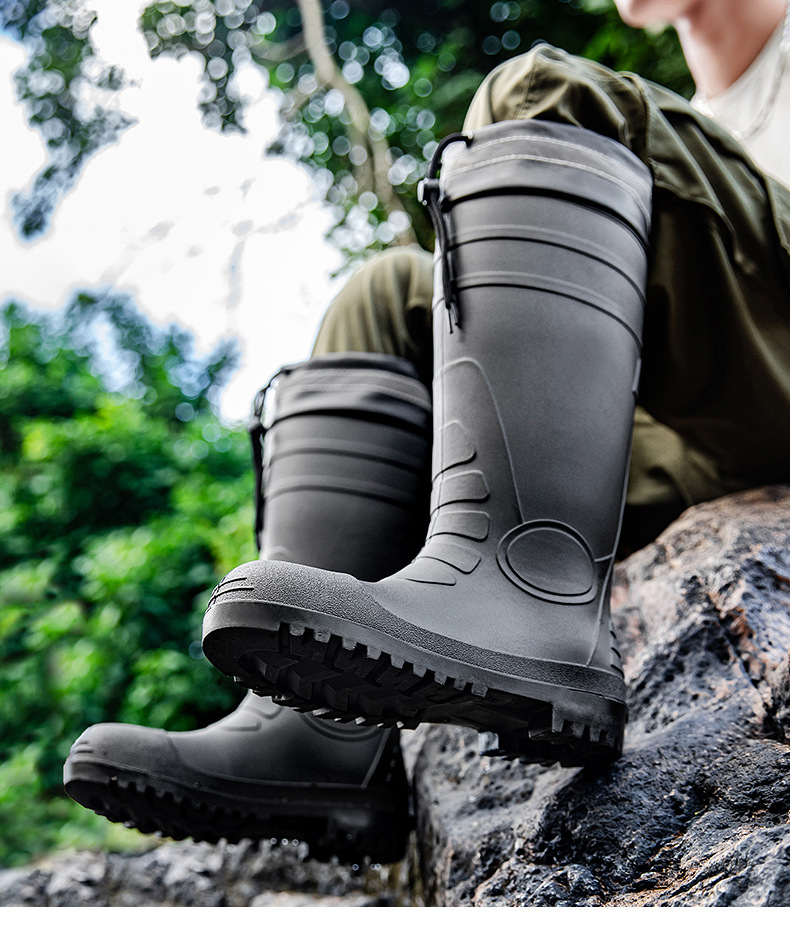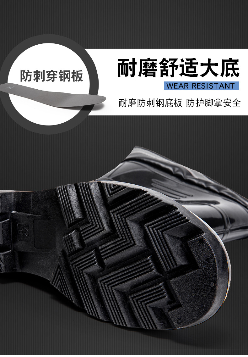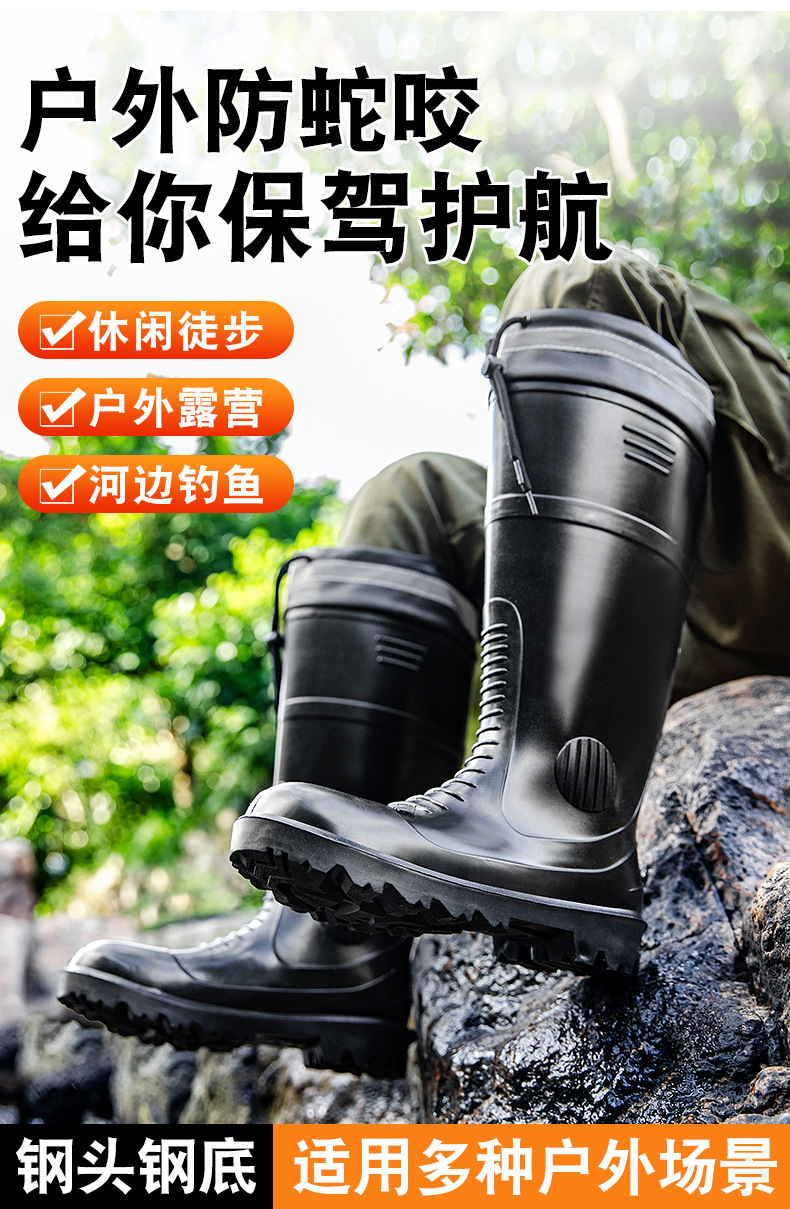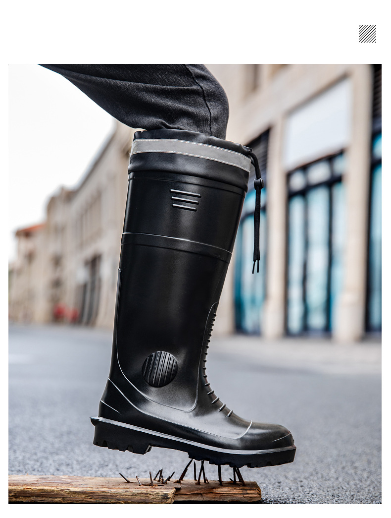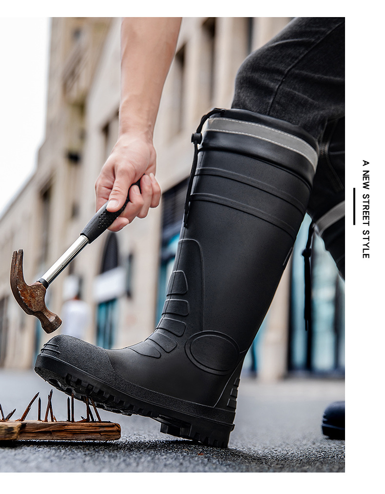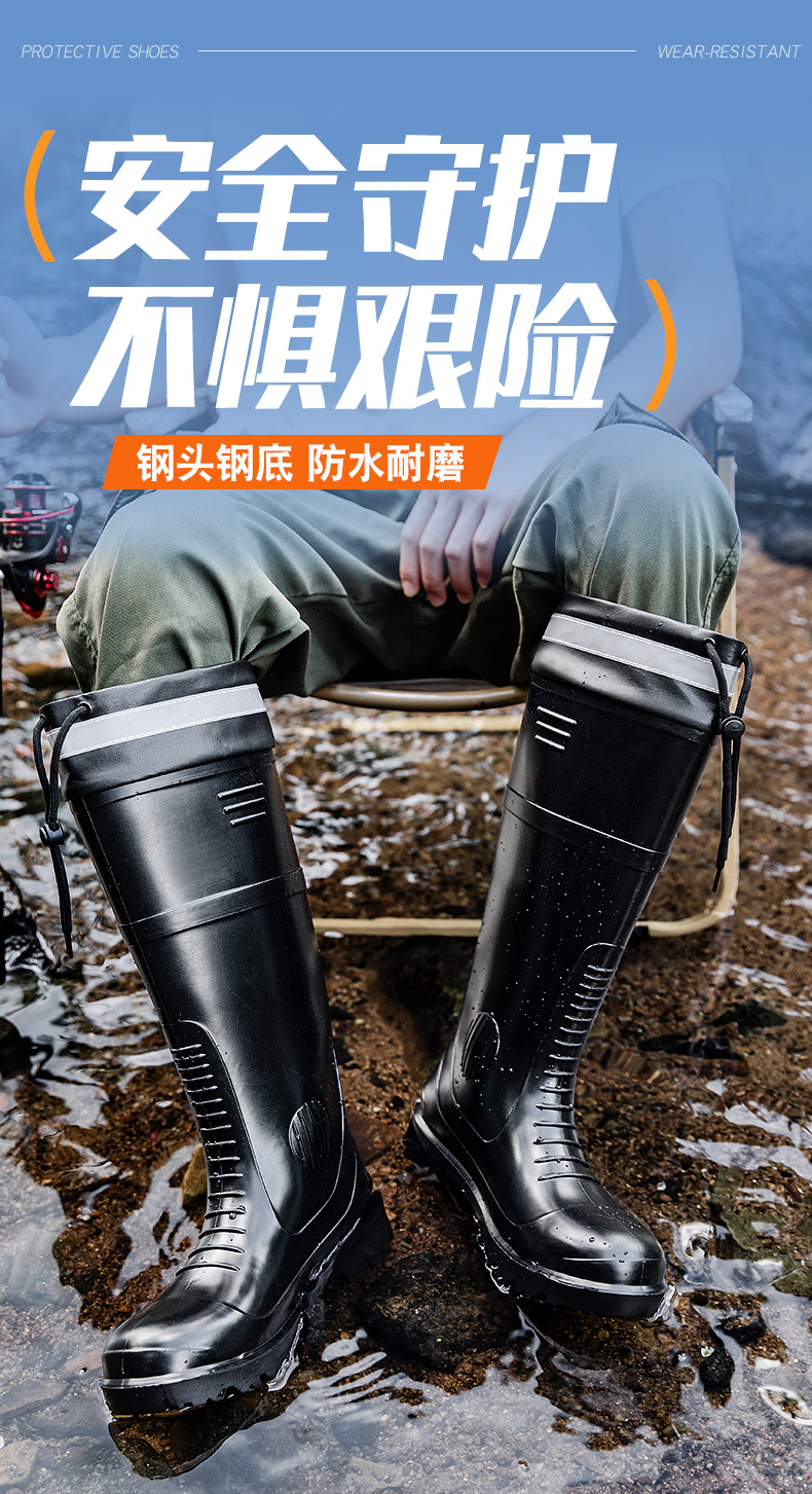 남성용 크로스보더 강철 토캡 및 강철 바닥 노동 보호 장화, 스매싱 방지 및 펑크 방지 워터 슈즈, 미끄럼 방지 고무 신발, 중간 높이 건설 현장, 두껍고 내마모성스토어 가기