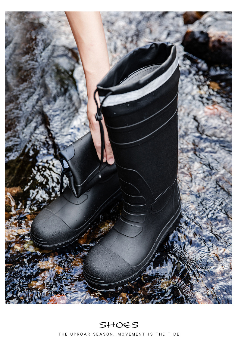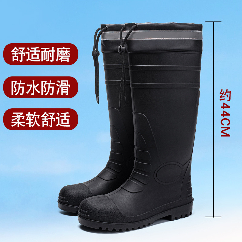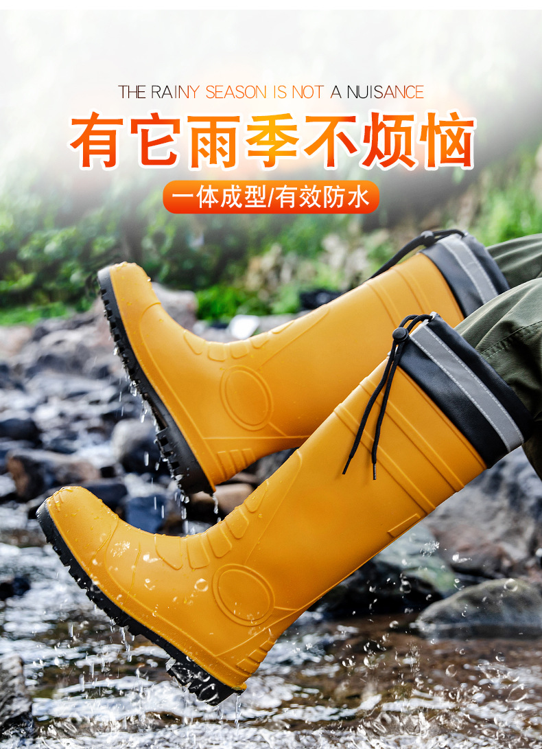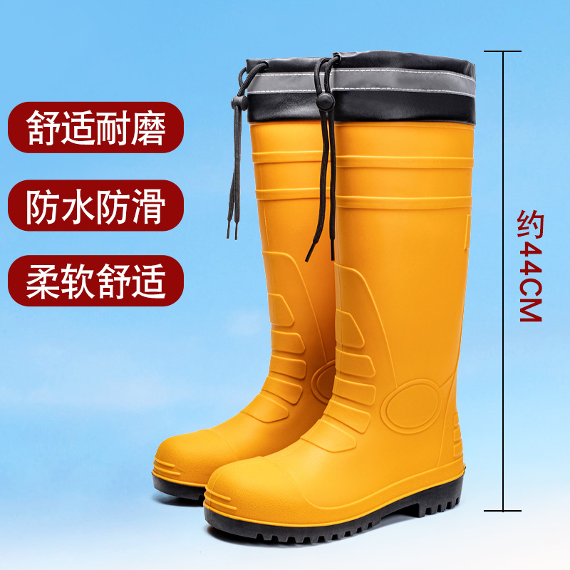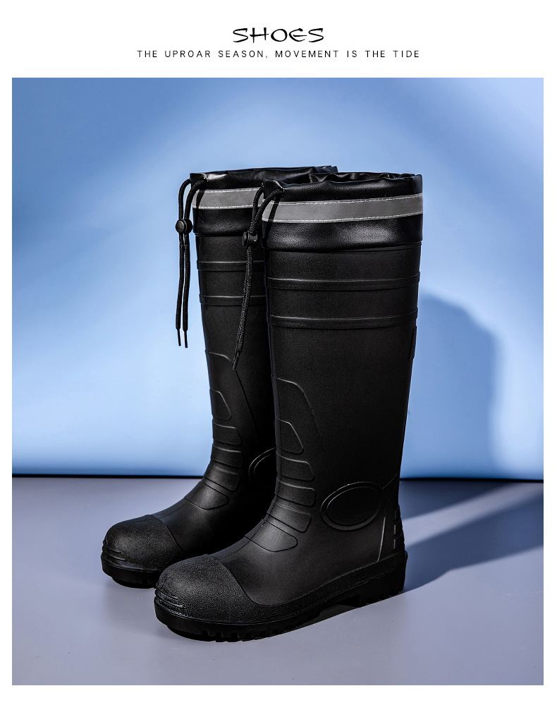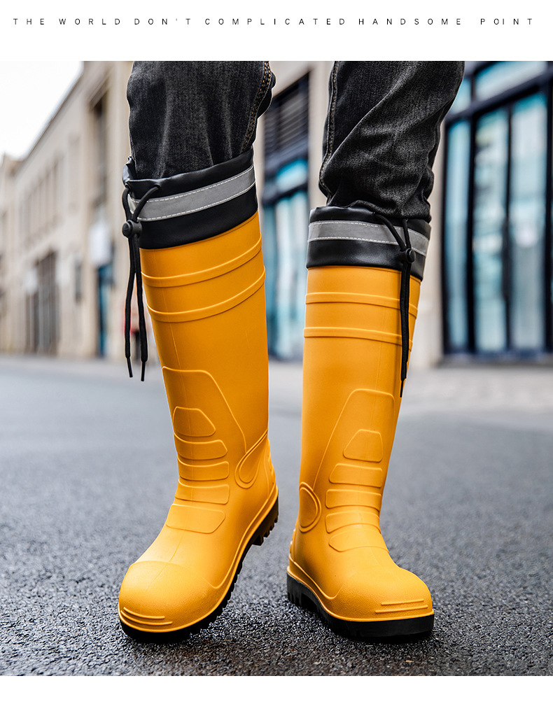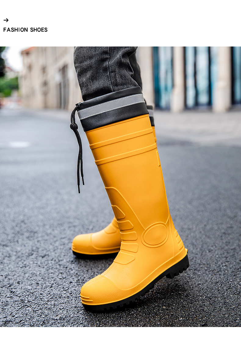 남성용 크로스보더 강철 토캡 및 강철 바닥 노동 보호 장화, 스매싱 방지 및 펑크 방지 워터 슈즈, 미끄럼 방지 고무 신발, 중간 높이 건설 현장, 두껍고 내마모성스토어 가기