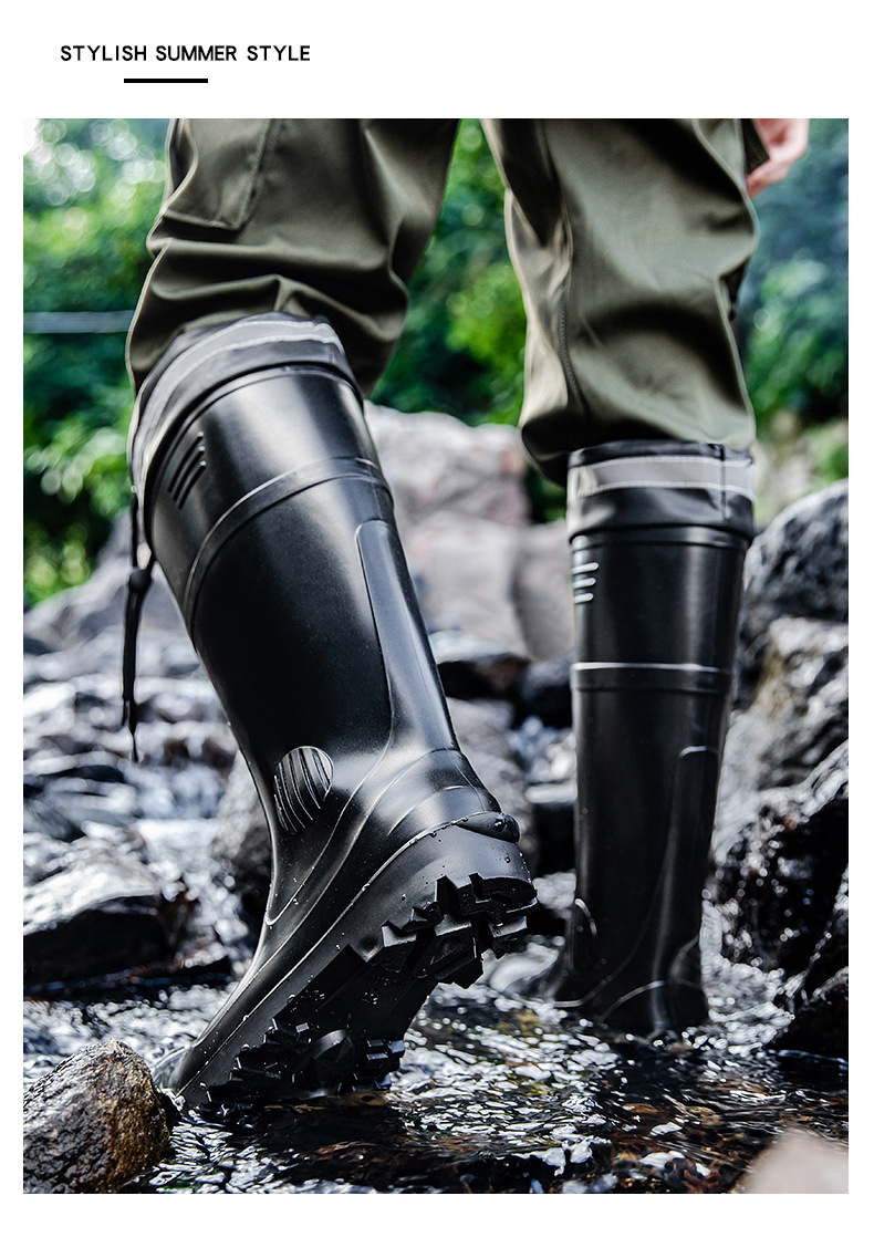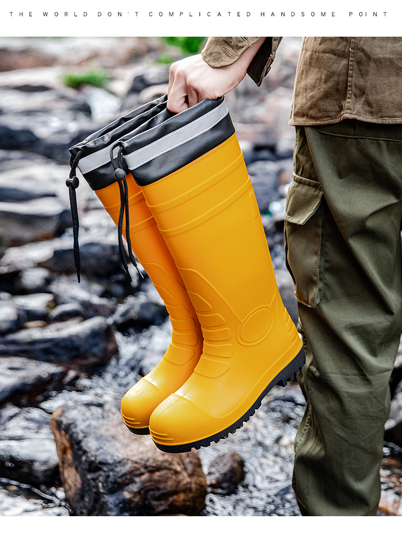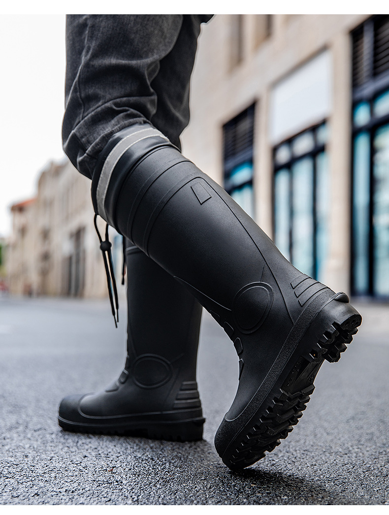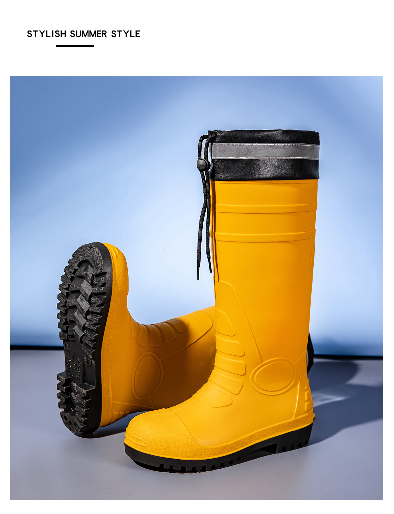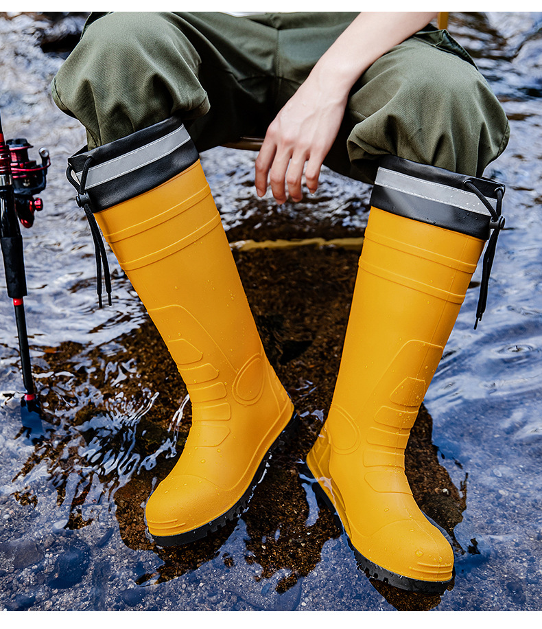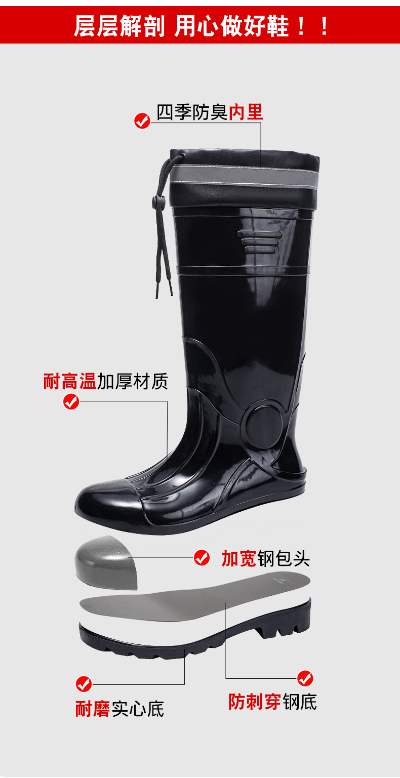 남성용 크로스보더 강철 토캡 및 강철 바닥 노동 보호 장화, 스매싱 방지 및 펑크 방지 워터 슈즈, 미끄럼 방지 고무 신발, 중간 높이 건설 현장, 두껍고 내마모성스토어 가기