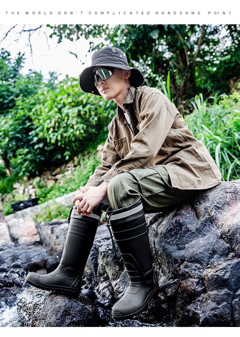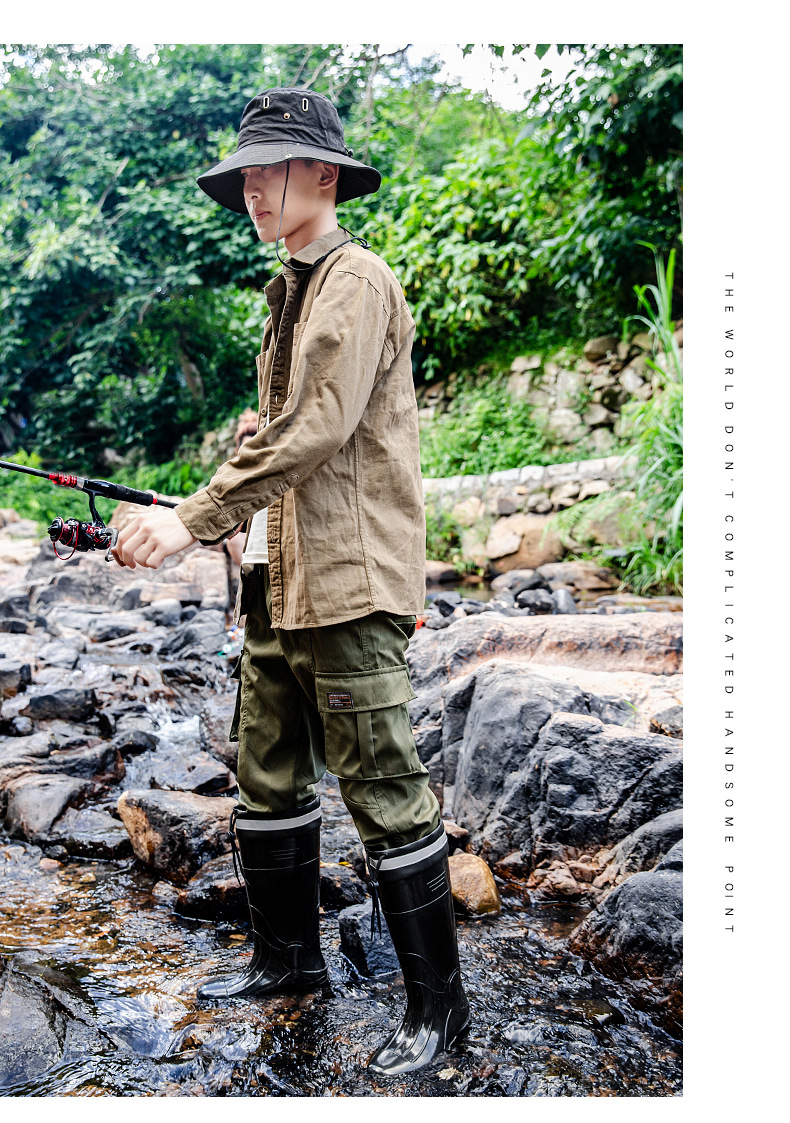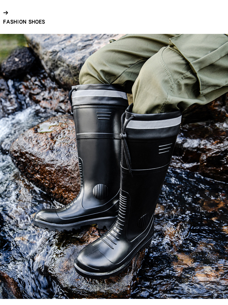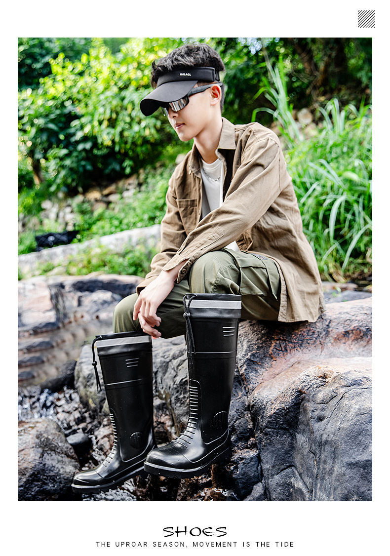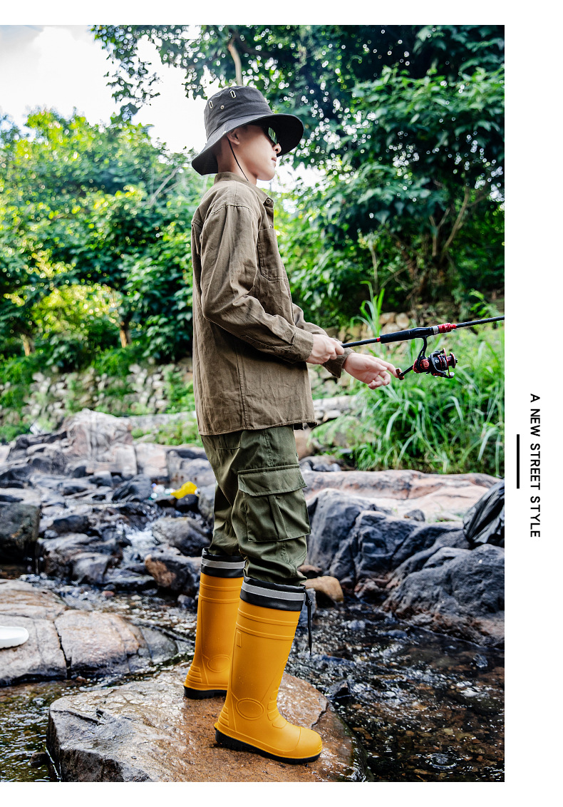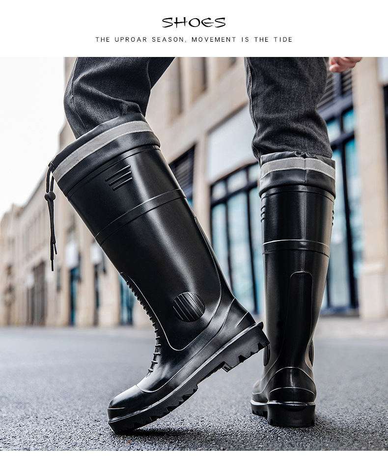 남성용 크로스보더 강철 토캡 및 강철 바닥 노동 보호 장화, 스매싱 방지 및 펑크 방지 워터 슈즈, 미끄럼 방지 고무 신발, 중간 높이 건설 현장, 두껍고 내마모성스토어 가기