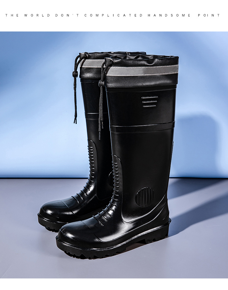 남성용 크로스보더 강철 토캡 및 강철 바닥 노동 보호 장화, 스매싱 방지 및 펑크 방지 워터 슈즈, 미끄럼 방지 고무 신발, 중간 높이 건설 현장, 두껍고 내마모성