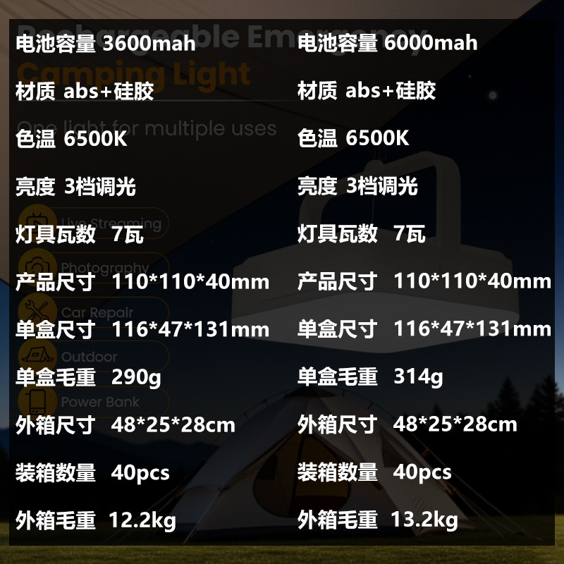 국경 간 LED 야외 캠핑 조명, 다기능, 긴 배터리 수명, 휴대용 텐트 조명, 가정용 정전 백업 비상 조명스토어 가기
