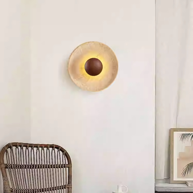중세 와비사비 스타일 레스토랑 및 B&B 황색 대리석 원형 벽 램프 복고풍 침실 머리맡 통로 계단 분위기 램프