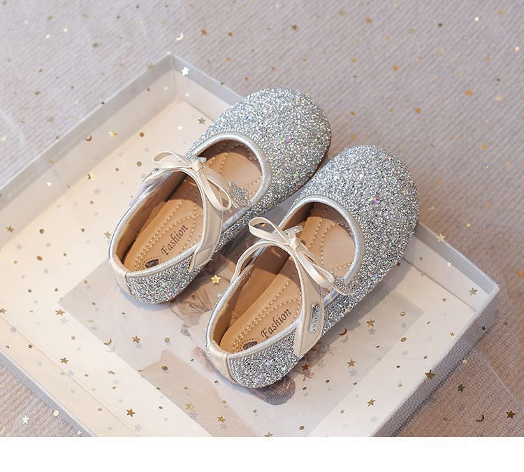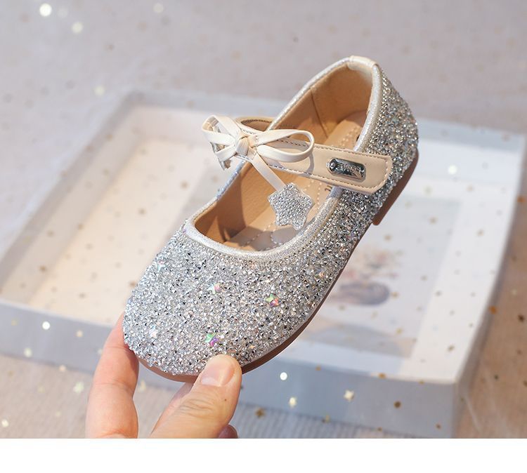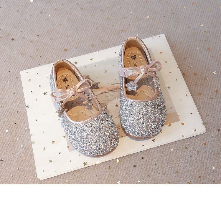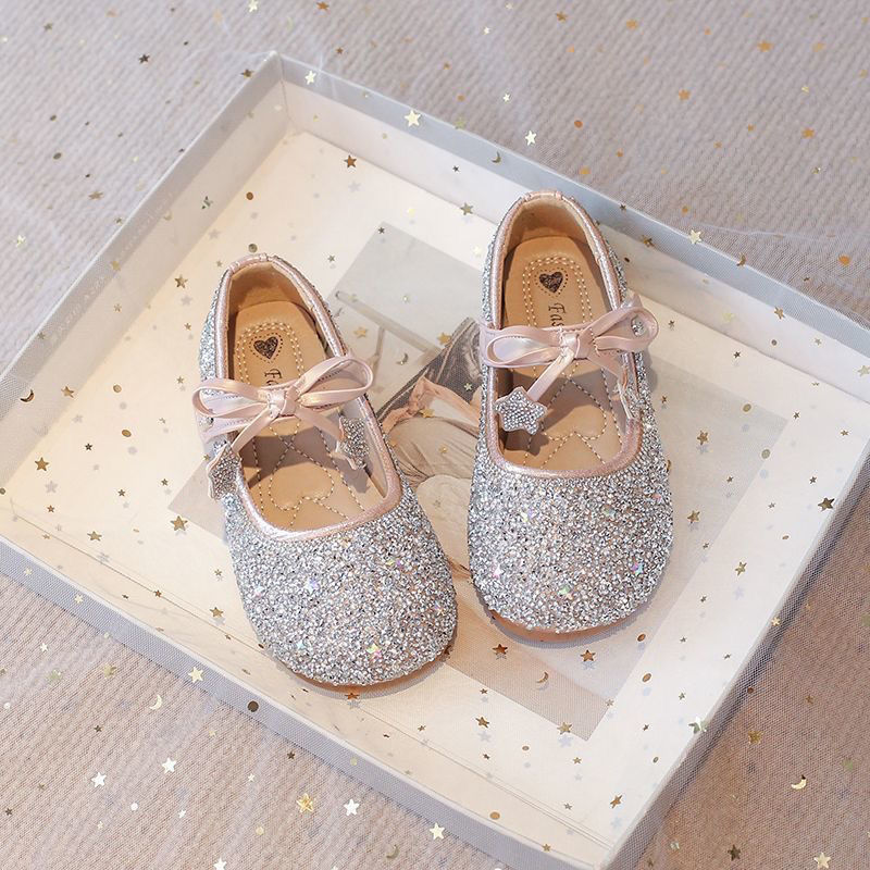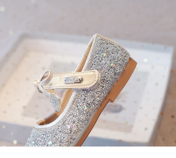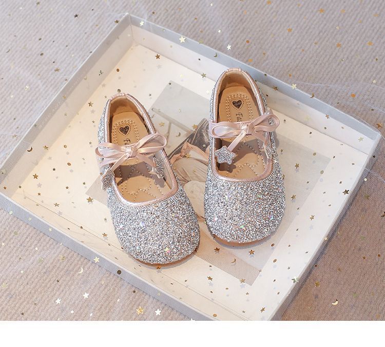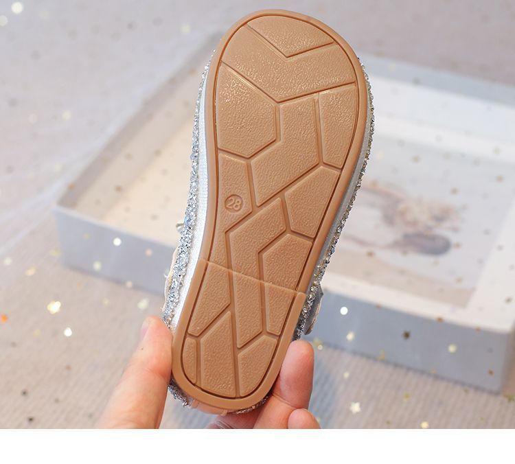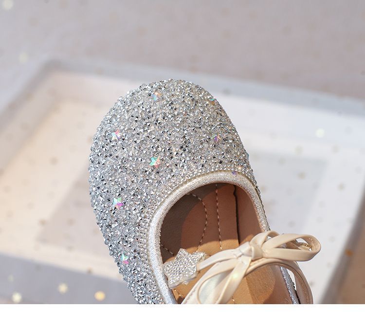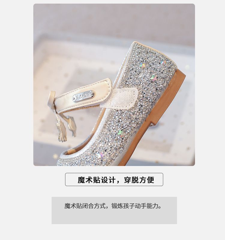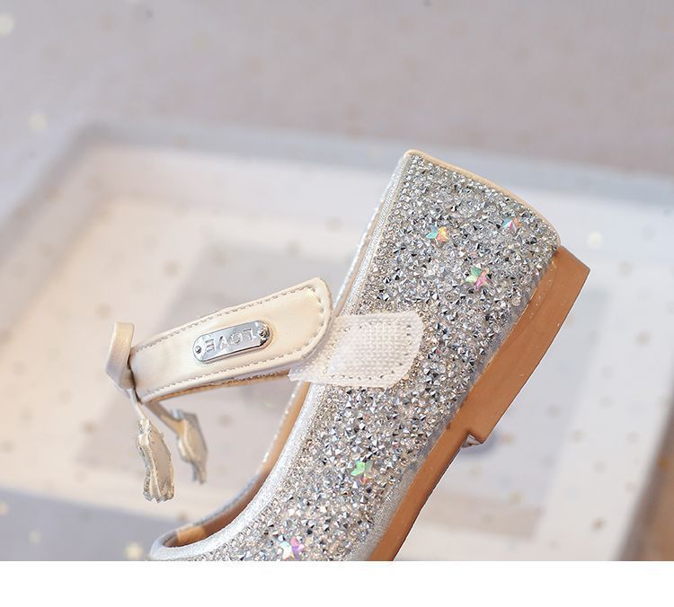여자 공주 반짝 이는 가죽 신발 어린이 2025 봄 새 신발 크리스탈 신발 부드러운 단독 아기 신발스토어 가기