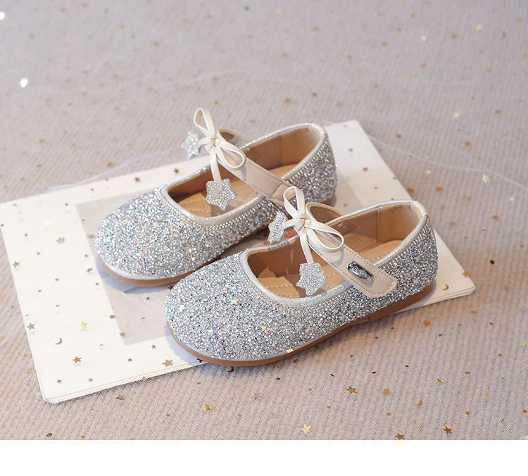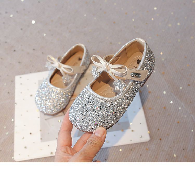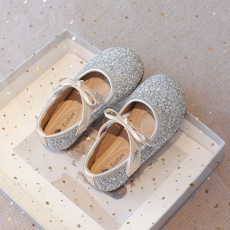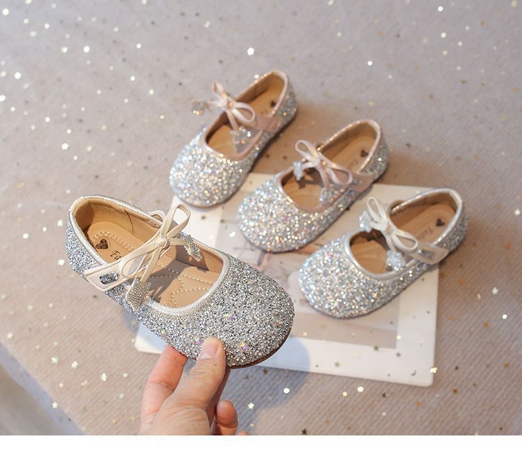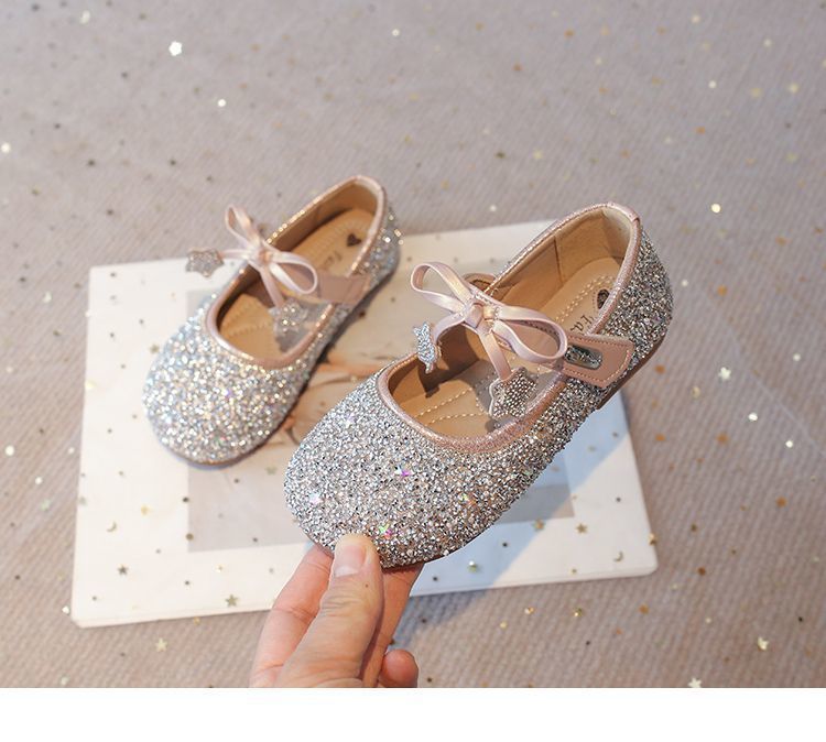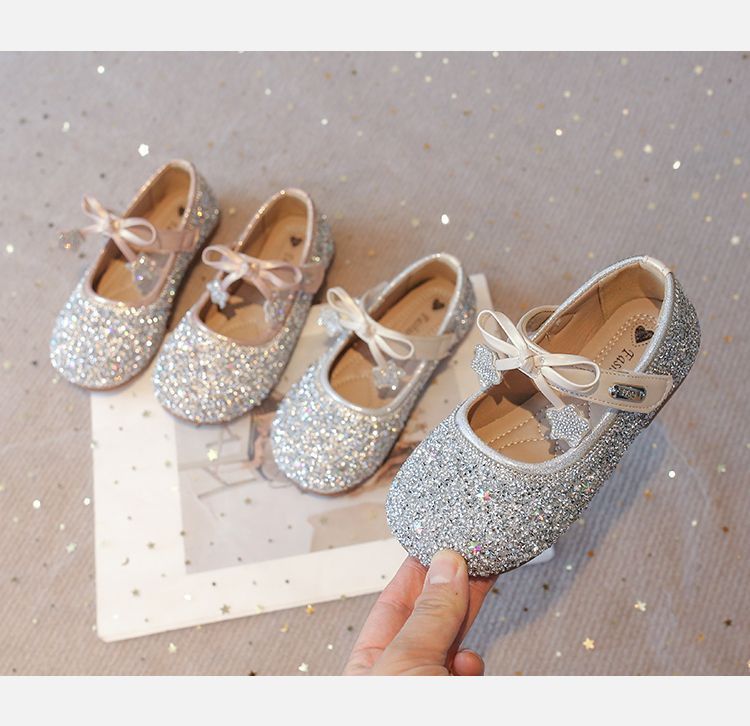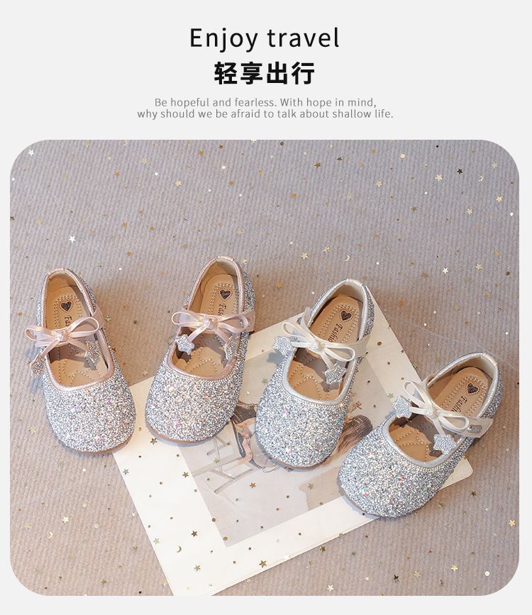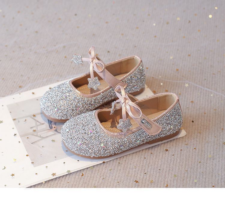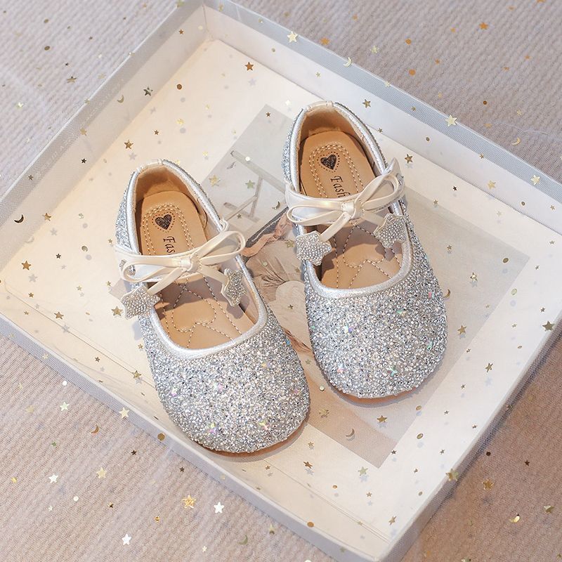 여자 공주 반짝 이는 가죽 신발 어린이 2025 봄 새 신발 크리스탈 신발 부드러운 단독 아기 신발스토어 가기
