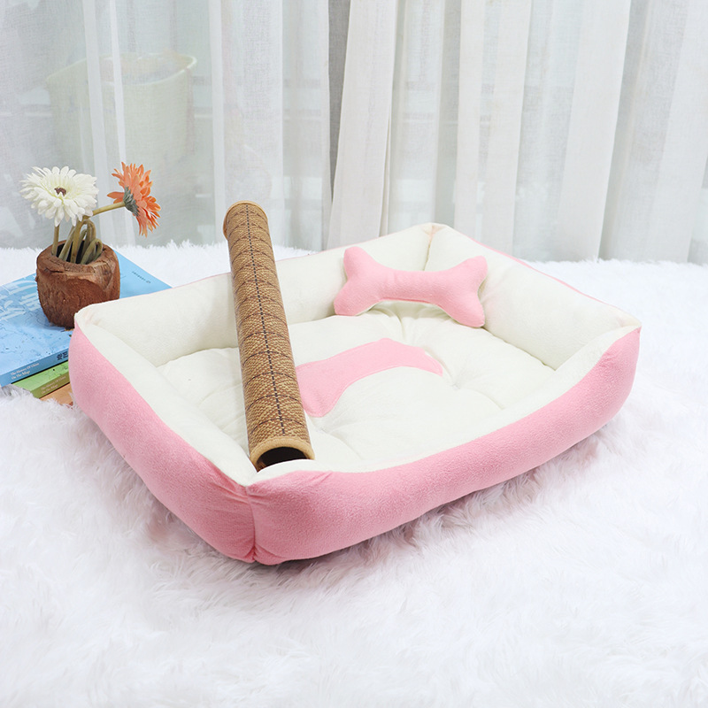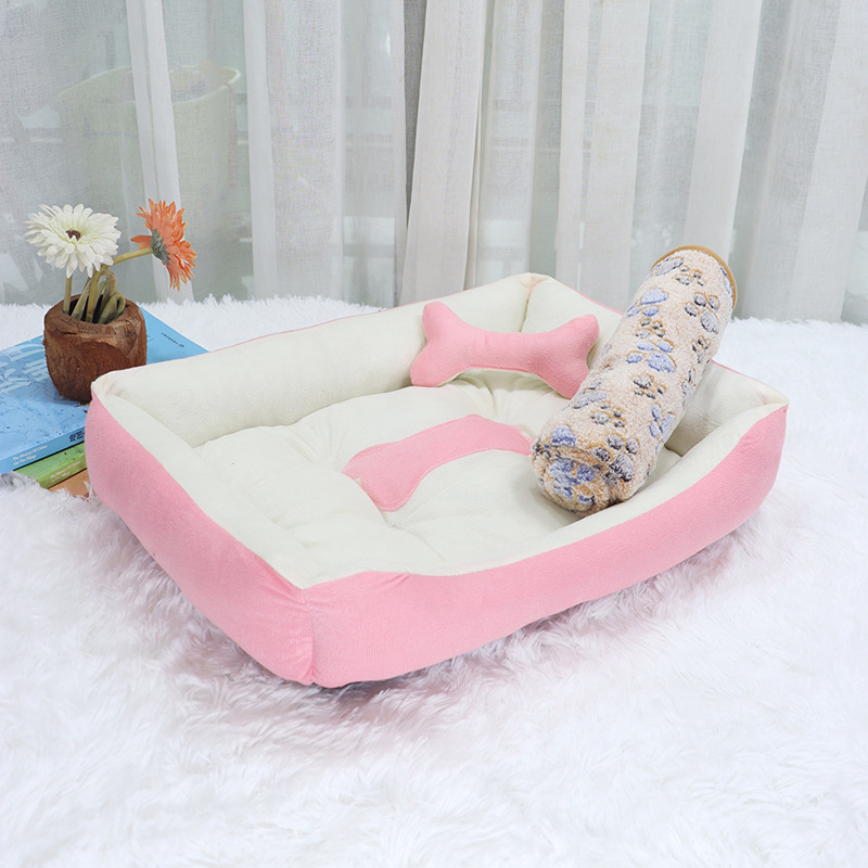 • 라이트 핑크 둥지 + 담요 + 씹는 밧줄이 달린 천 뼈