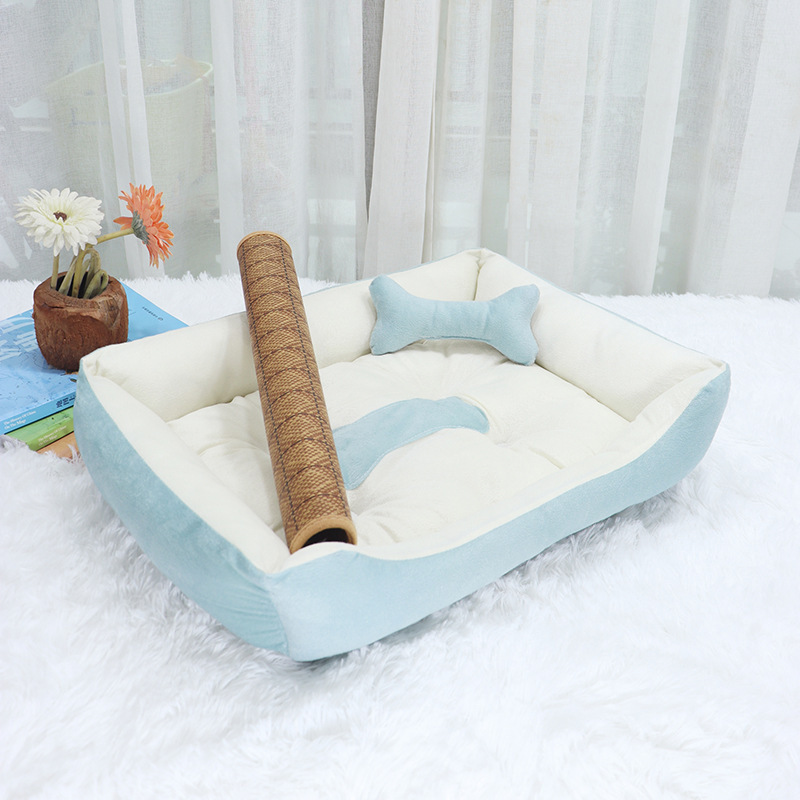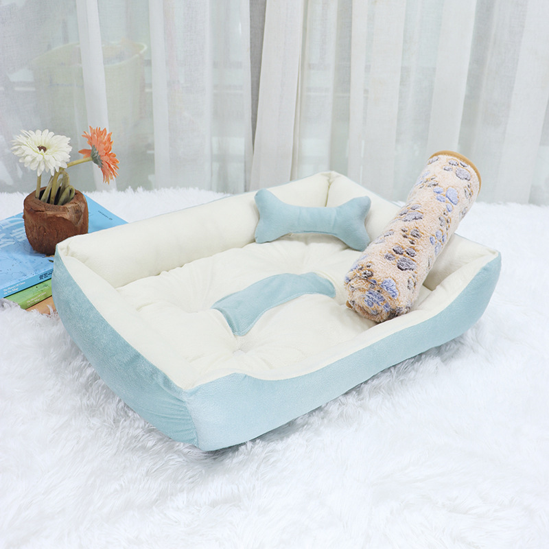 • 하늘색 둥지 + 매트 + 담요 + 씹는 밧줄이 달린 천뼈