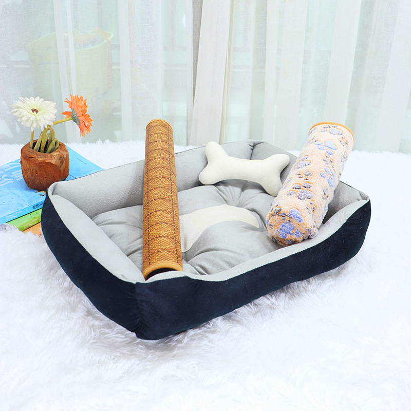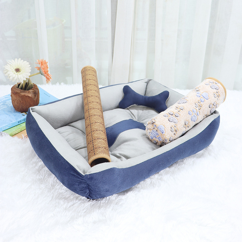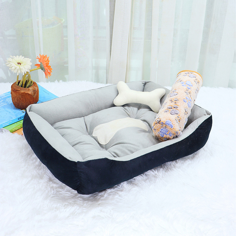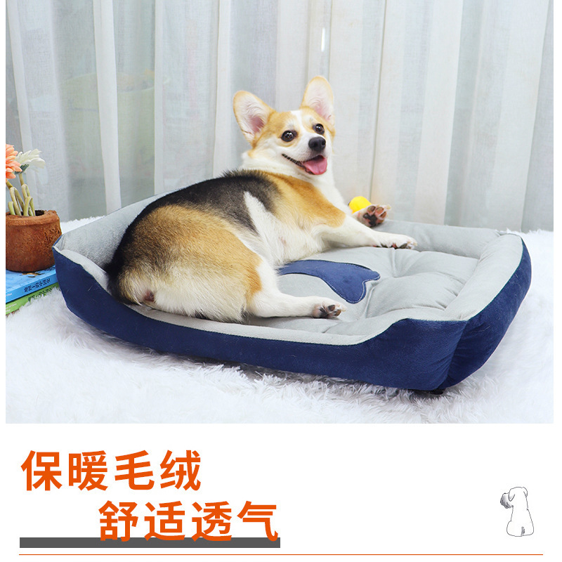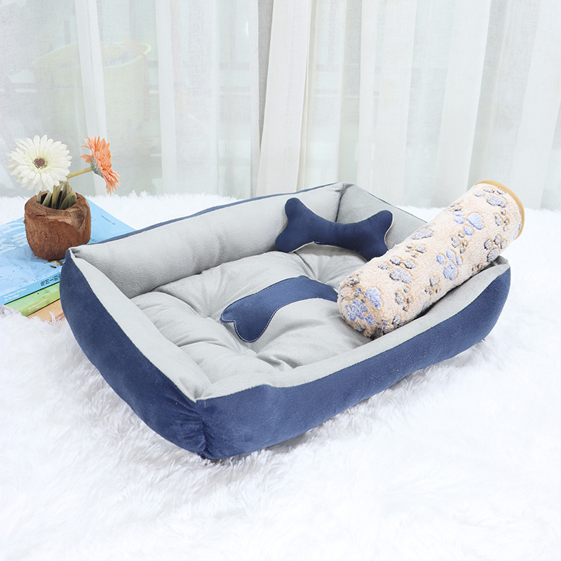 • 진한 파란색 둥지 + 매트 + 담요 + 씹는 밧줄이 달린 천 뼈