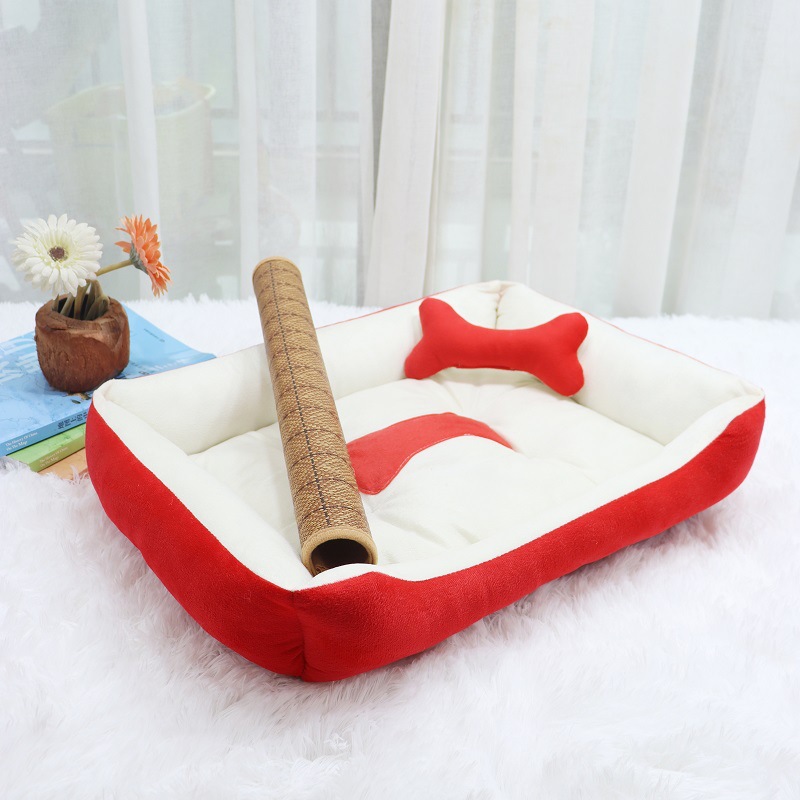 • 큰 빨간 둥지 + 매트 + 담요 + 씹는 밧줄이 달린 천뼈
