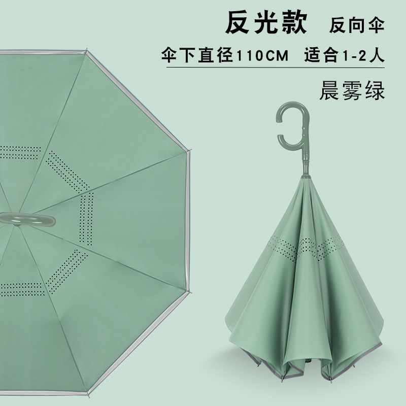 • 반사 스트립 모닝 미스트 그린 자동 역방향 우산