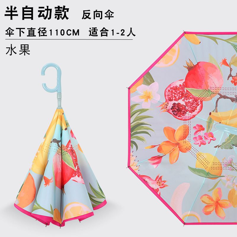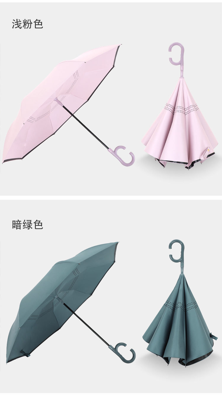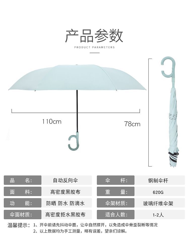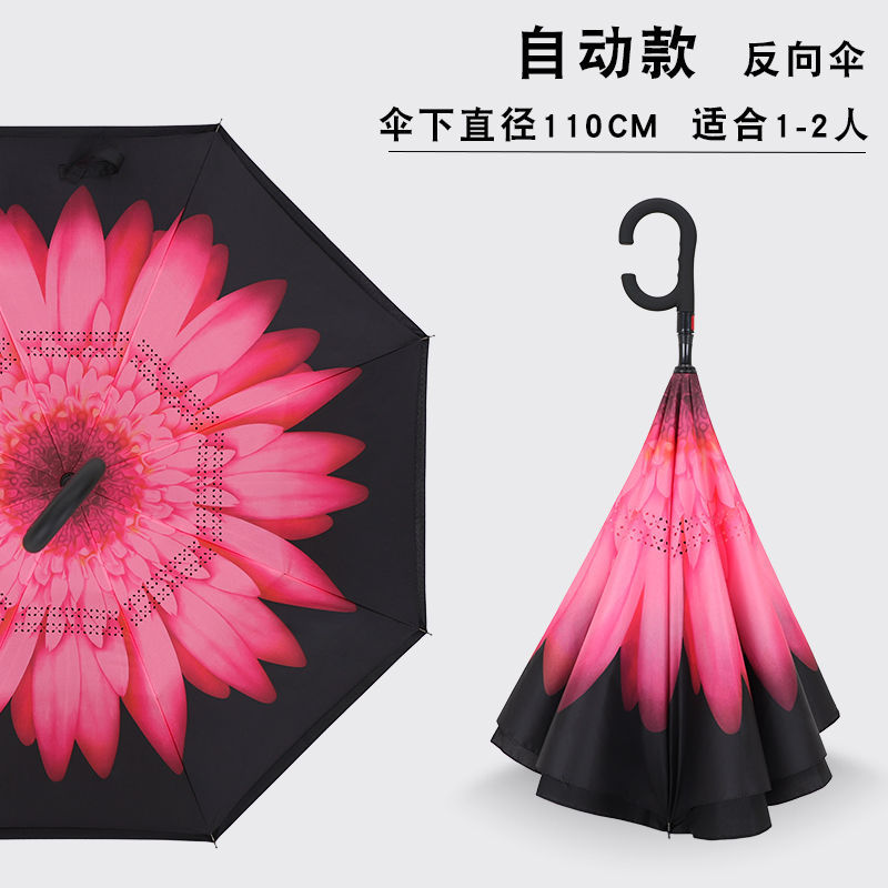 컬러 매칭 비닐 이중 우산, 자외선 차단 및 방수, 야간 반사 우산, 두껍고 물에 젖지 않는 자동 역방향 우산, 이중 용도