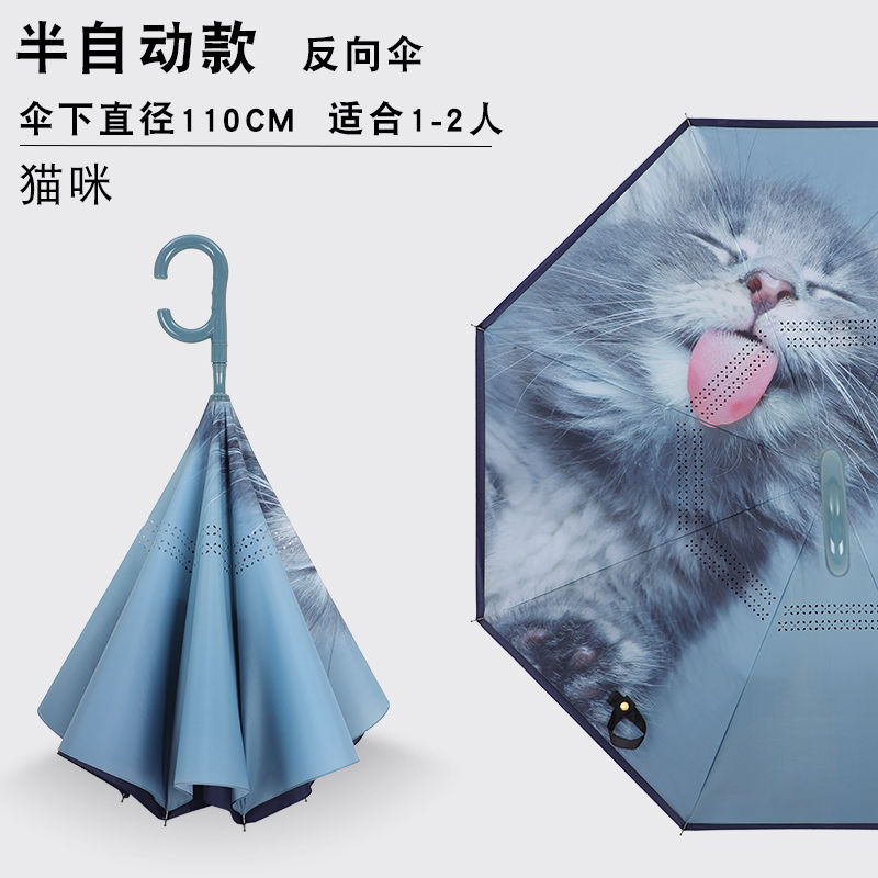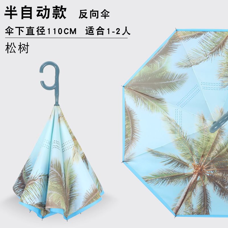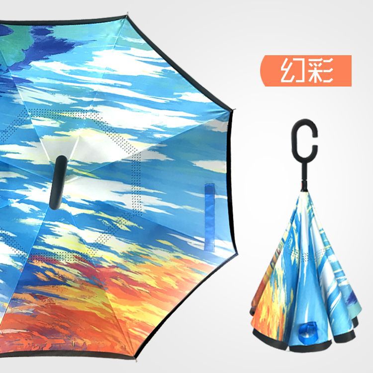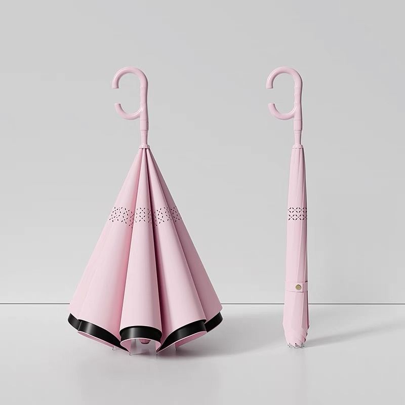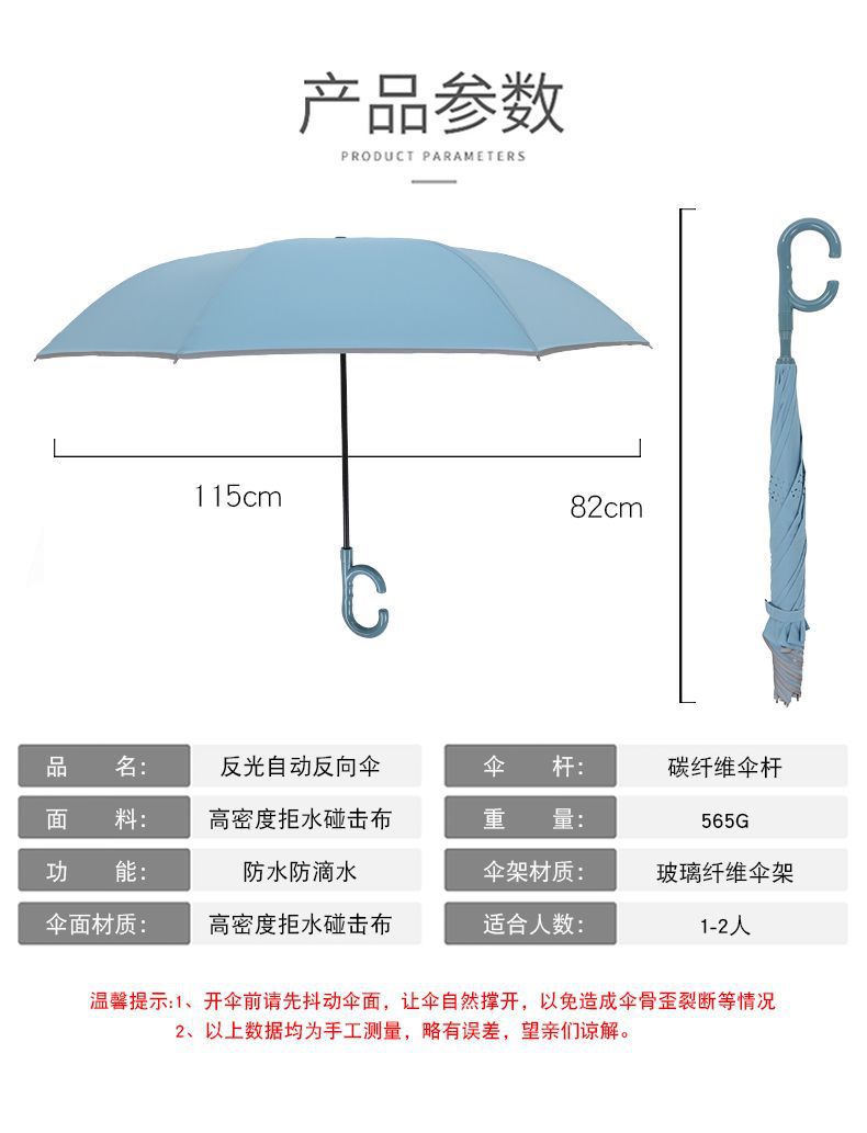 컬러 매칭 비닐 이중 우산, 자외선 차단 및 방수, 야간 반사 우산, 두껍고 물에 젖지 않는 자동 역방향 우산, 이중 용도