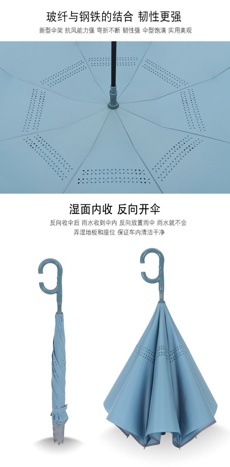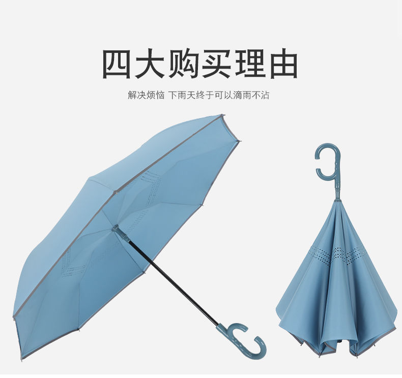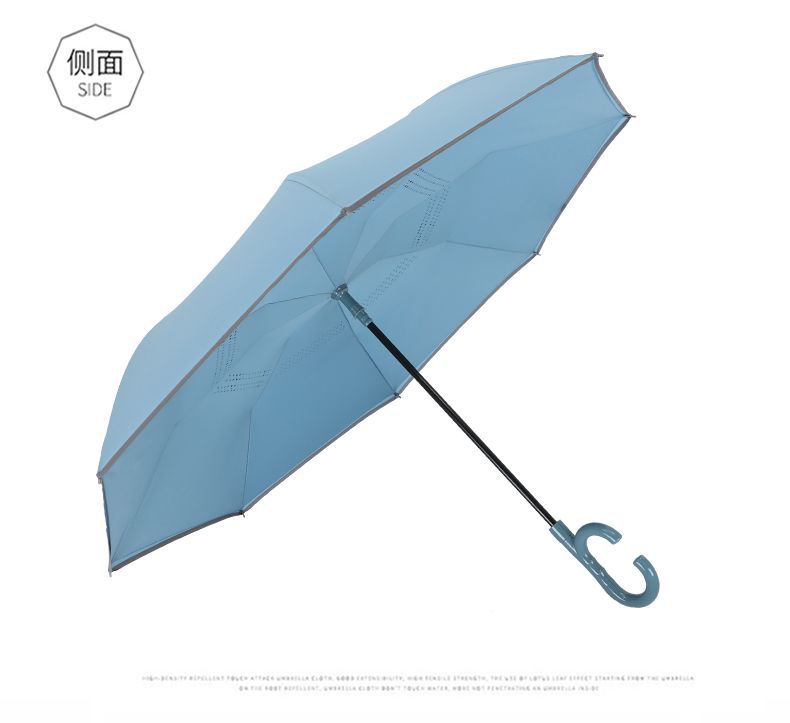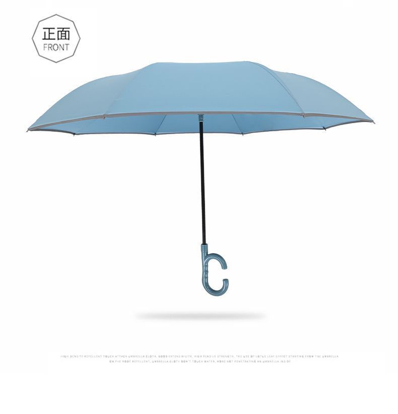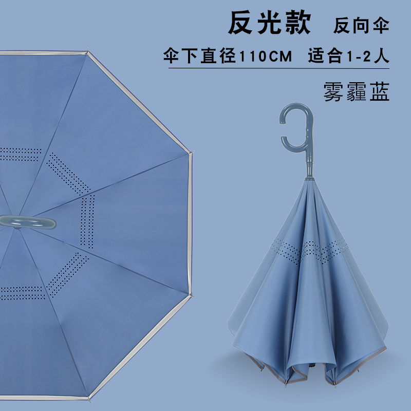 • 반사 스트립 헤이즈 블루 자동 역방향 우산