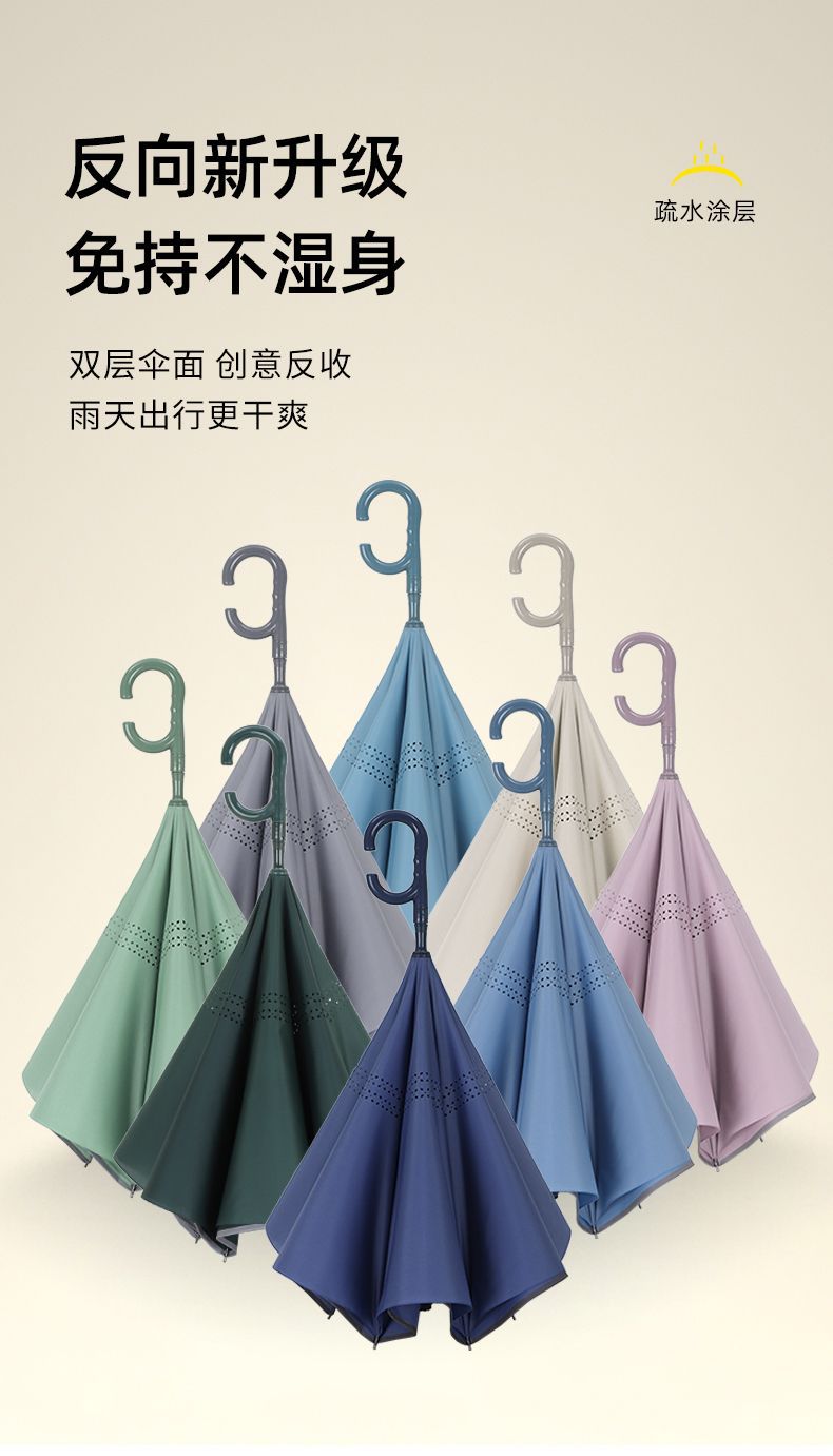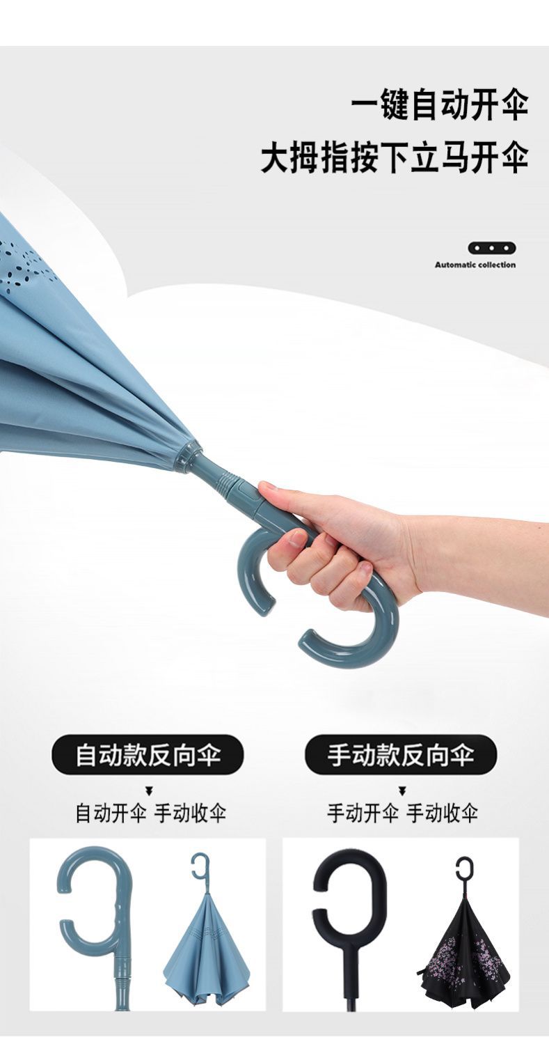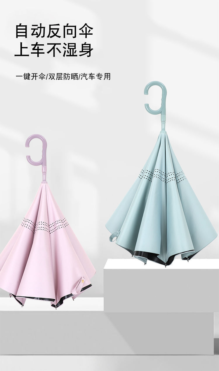 컬러 매칭 비닐 이중 우산, 자외선 차단 및 방수, 야간 반사 우산, 두껍고 물에 젖지 않는 자동 역방향 우산, 이중 용도스토어 가기