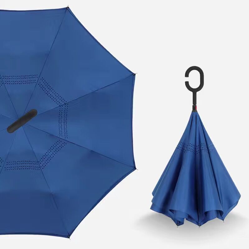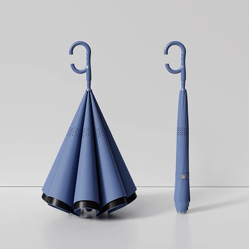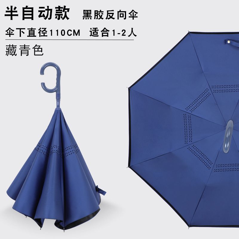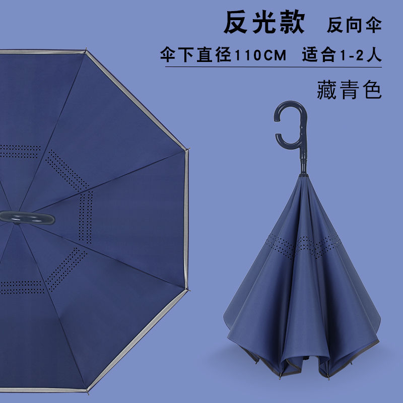 • 반사 스트립 네이비 블루 자동 역방향 우산