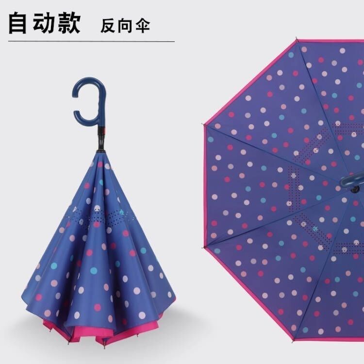• 임팩트 천 폴카 도트 자동 역방향 우산