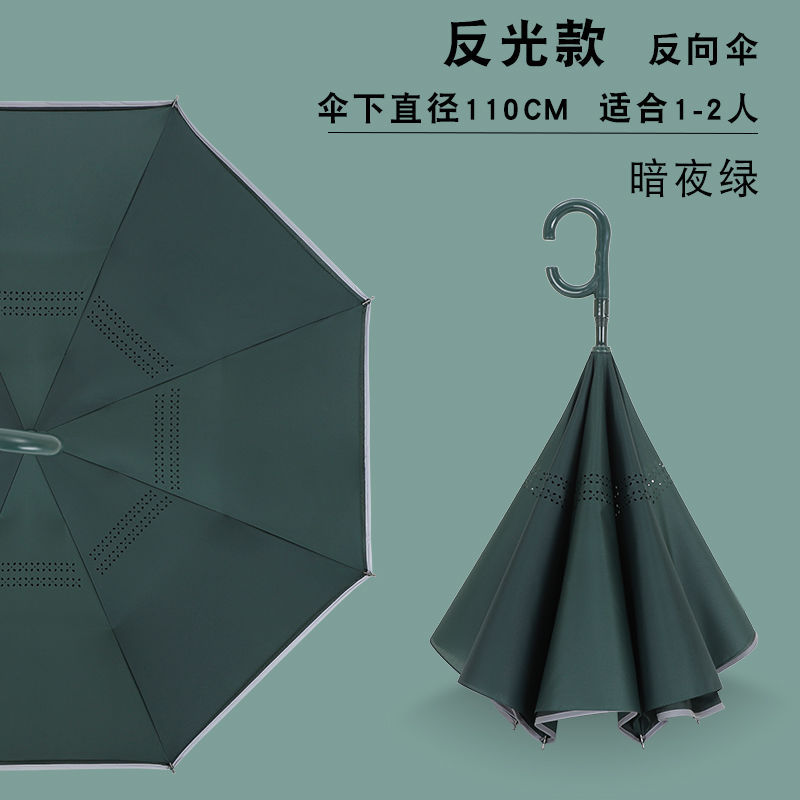• 반사 스트립 짙은 밤 녹색 자동 역방향 우산