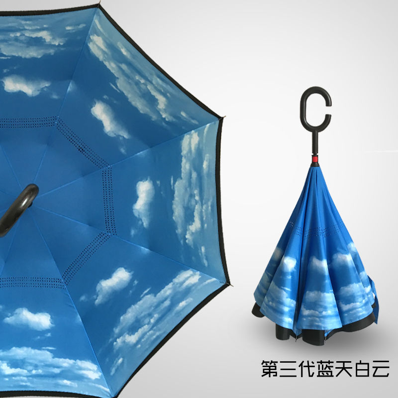 • 임팩트 천 푸른 하늘과 흰 구름 수동 역방향 우산