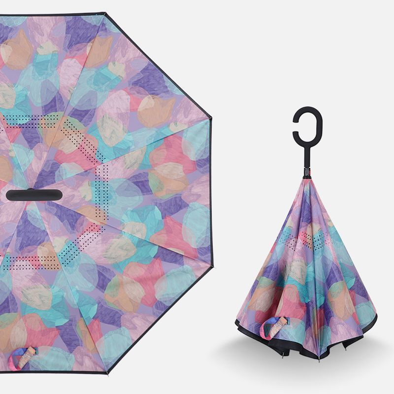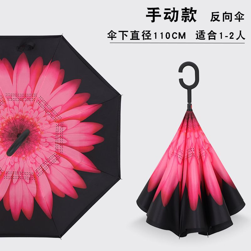 • 임팩트 천 꽃 그림자 수동 역방향 우산