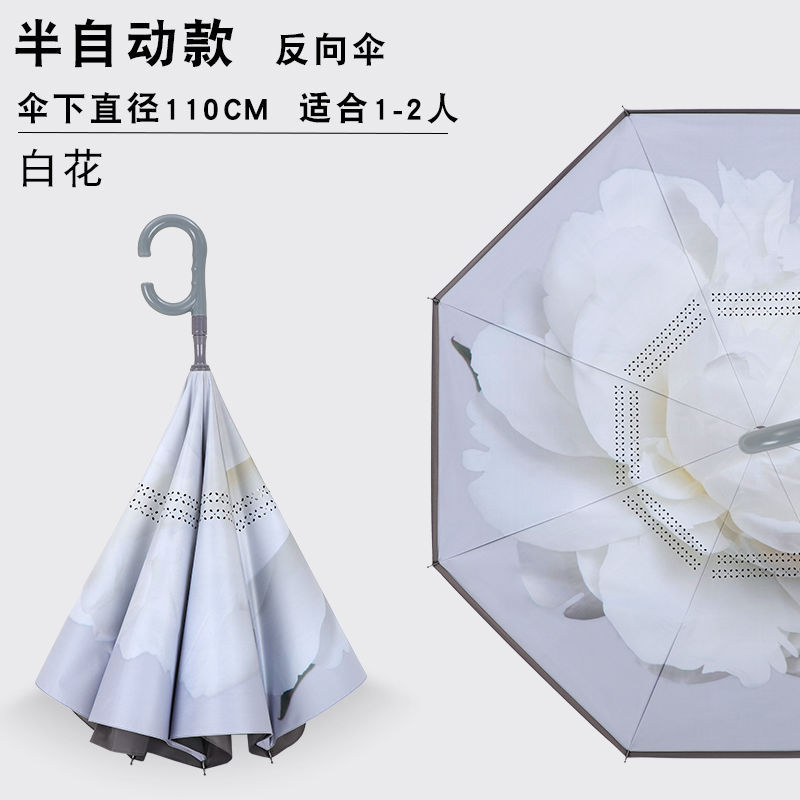 • 임팩트 천 흰 꽃 자동 역방향 우산