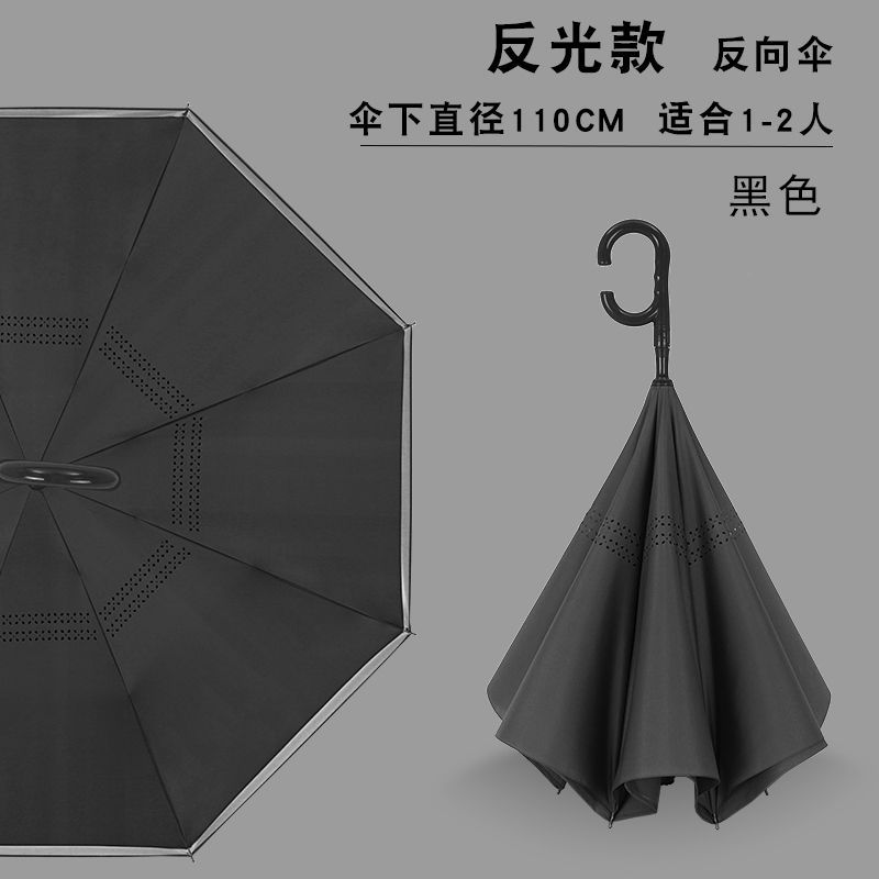 • 반사 스트립이 있는 제트 블랙 자동 역방향 우산