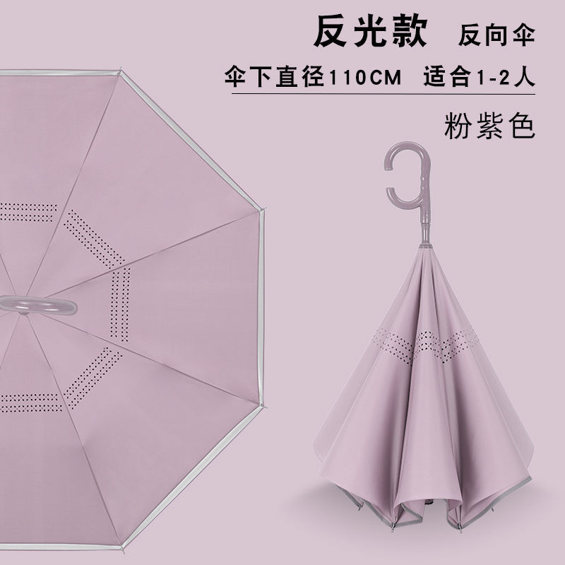 • 반사 스트립 핑크 퍼플 자동 역방향 우산