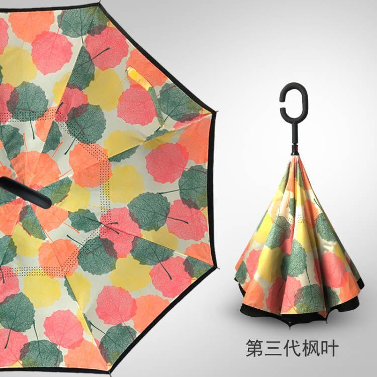 • 임팩트 천 단풍잎 수동 역방향 우산