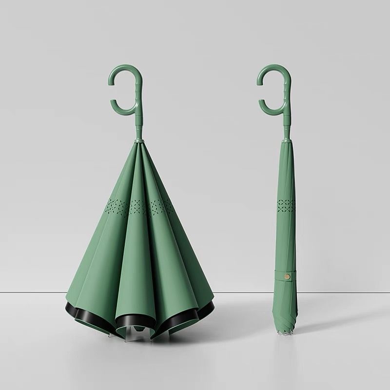 • 임팩트 천 녹색 잎 수동 역방향 우산