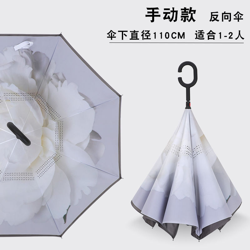 • 임팩트 천 흰 꽃 수동 역방향 우산