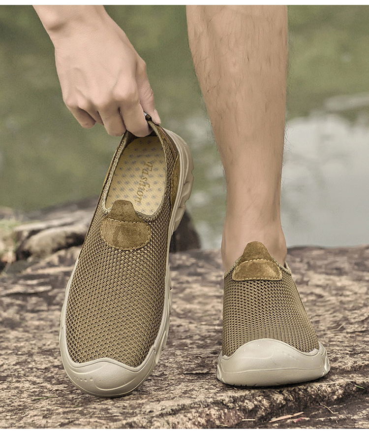 여름 남성 슬립온 스포츠 캐주얼 신발, 통기성, 경량 등산, 내마모성 캐주얼 신발, 메쉬 아웃도어 신발스토어 가기