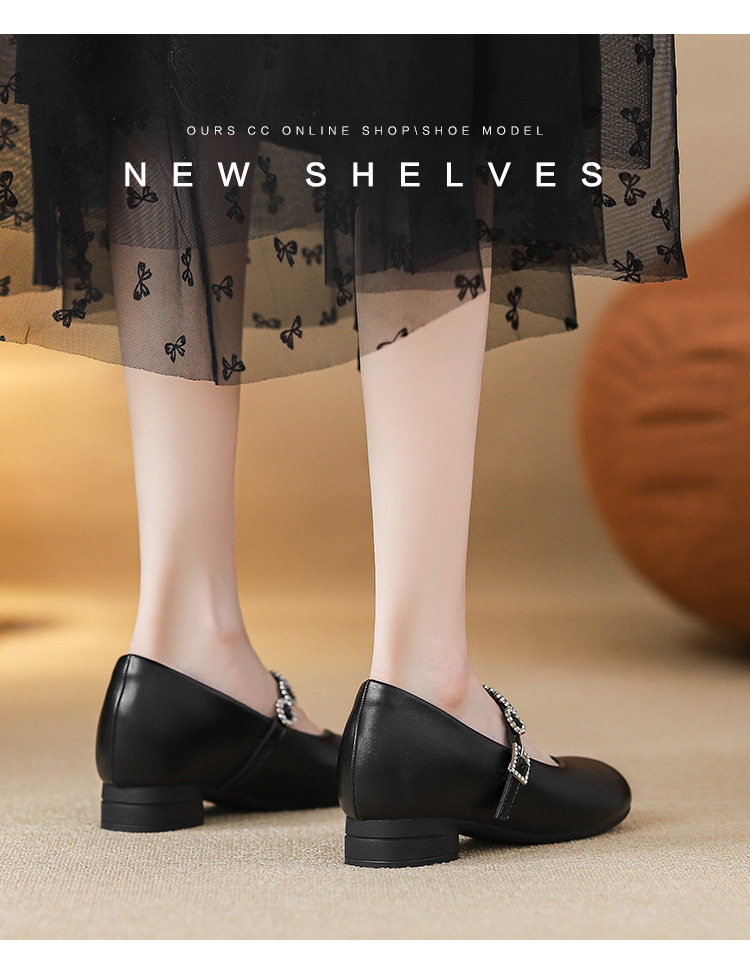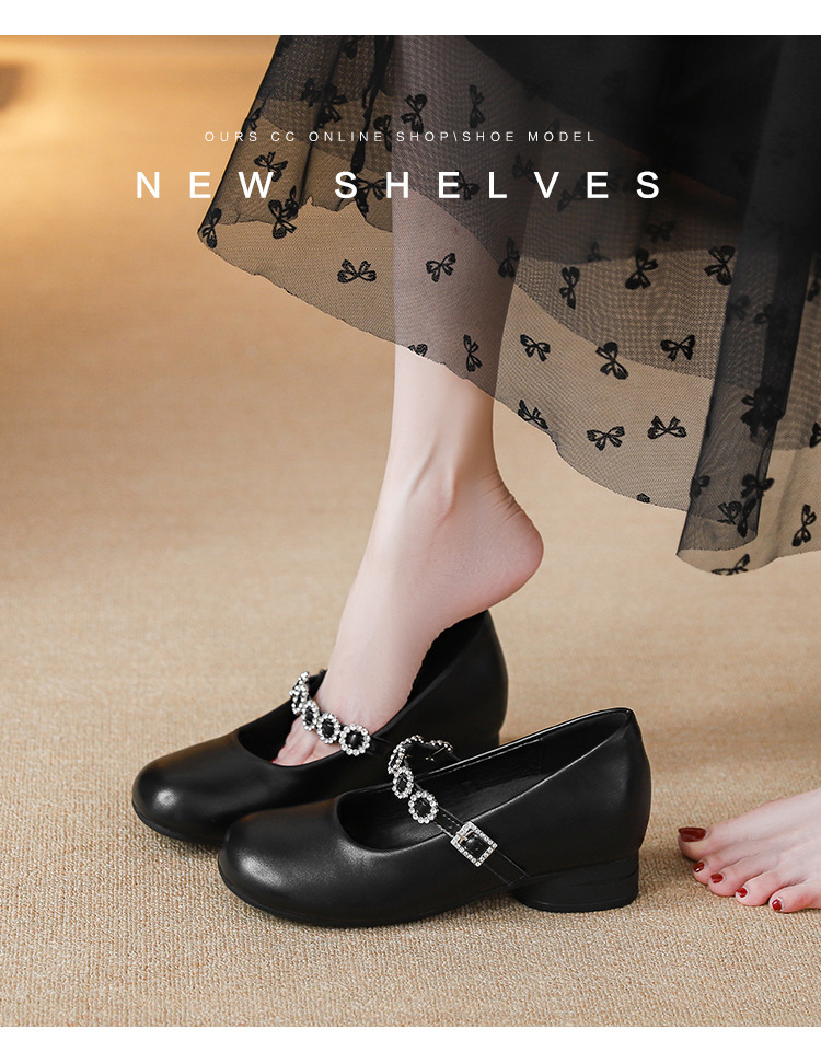 키 작은 사람들을 위한 7cm 키높이 메리제인 슈즈, 2025년 신형 원라인 버클 스트랩 펌프스 슈즈, 라인스톤 할머니 슈즈