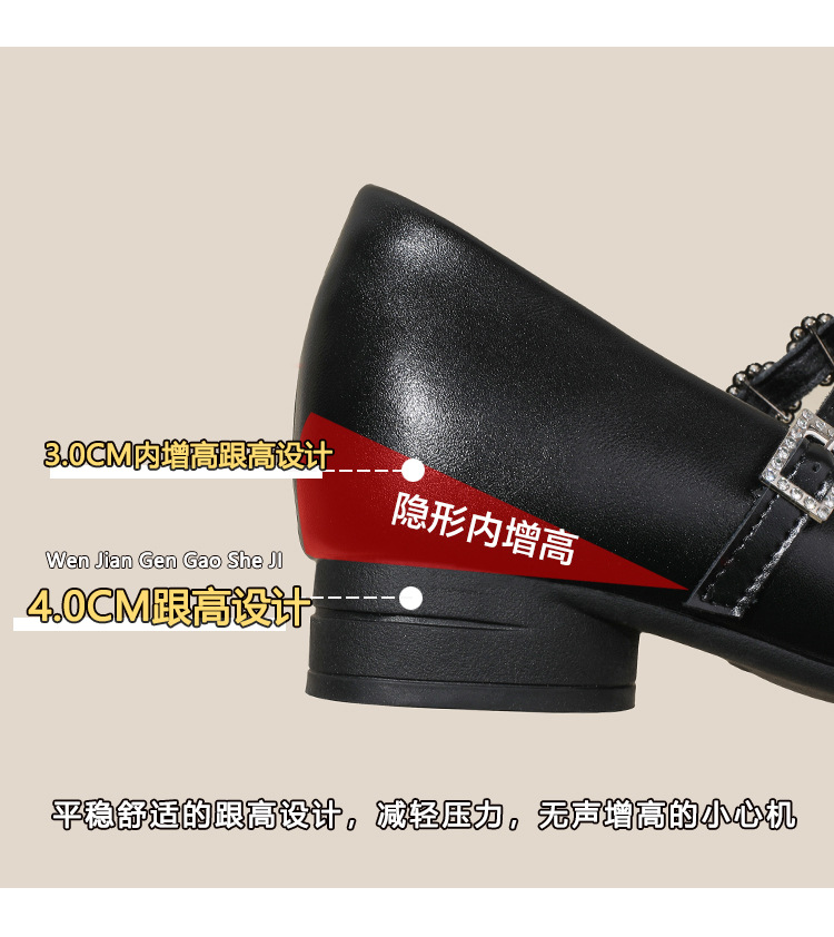 키 작은 사람들을 위한 7cm 키높이 메리제인 슈즈, 2025년 신형 원라인 버클 스트랩 펌프스 슈즈, 라인스톤 할머니 슈즈스토어 가기