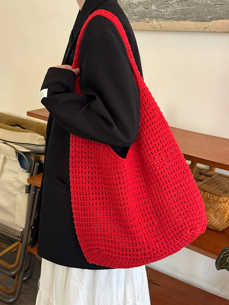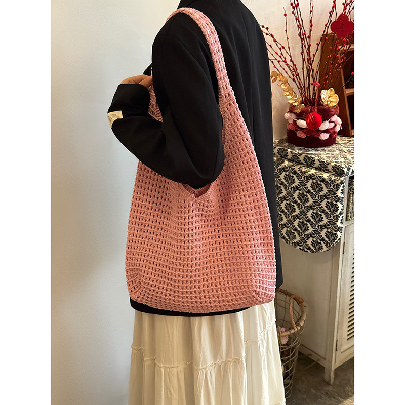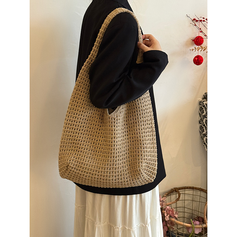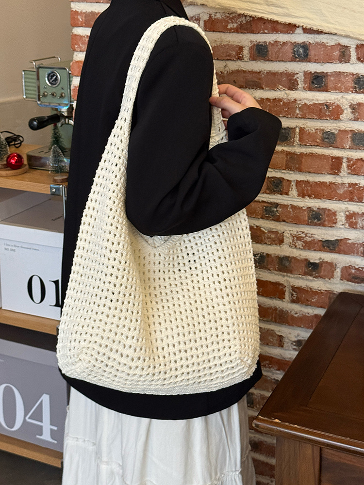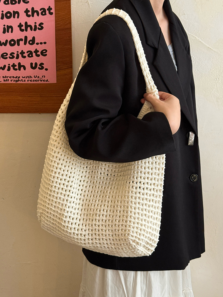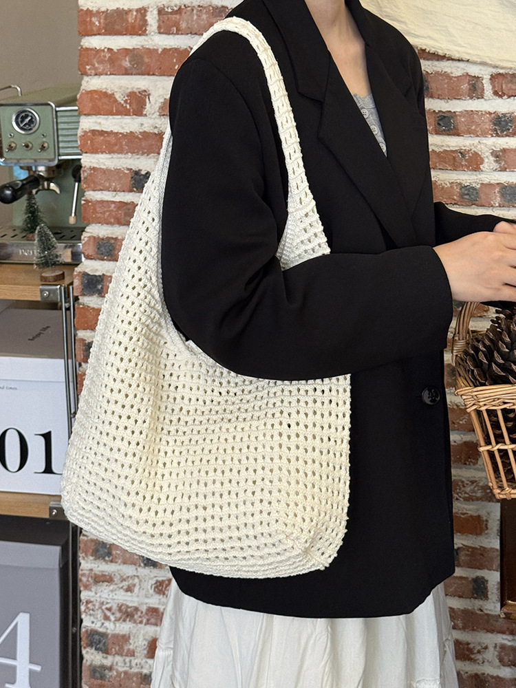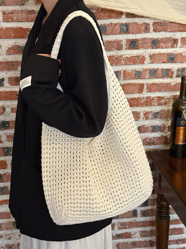 한국 스타일 여성용 레이스 엮임 가방 2026년 신상 여름 캐주얼 휴가 여행 토트백 대용량 숄더백