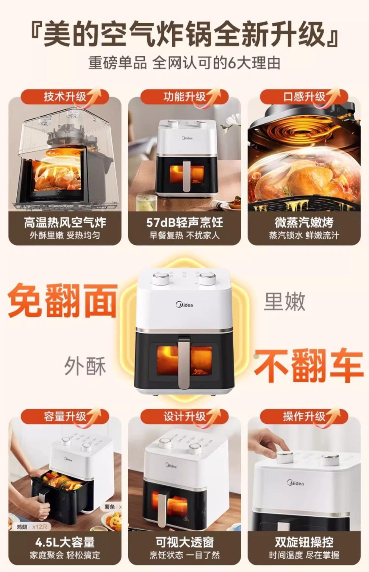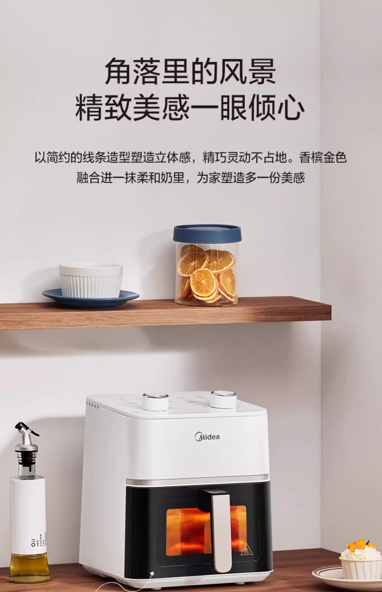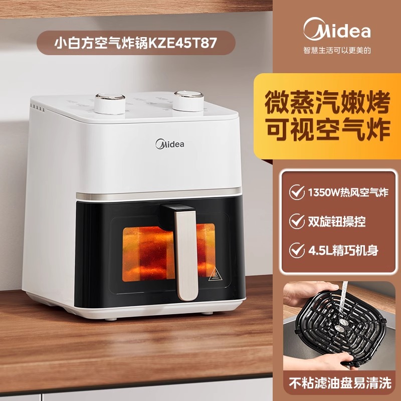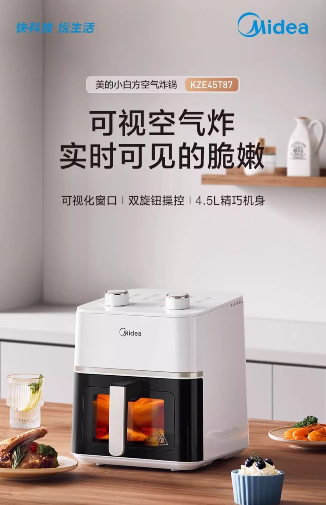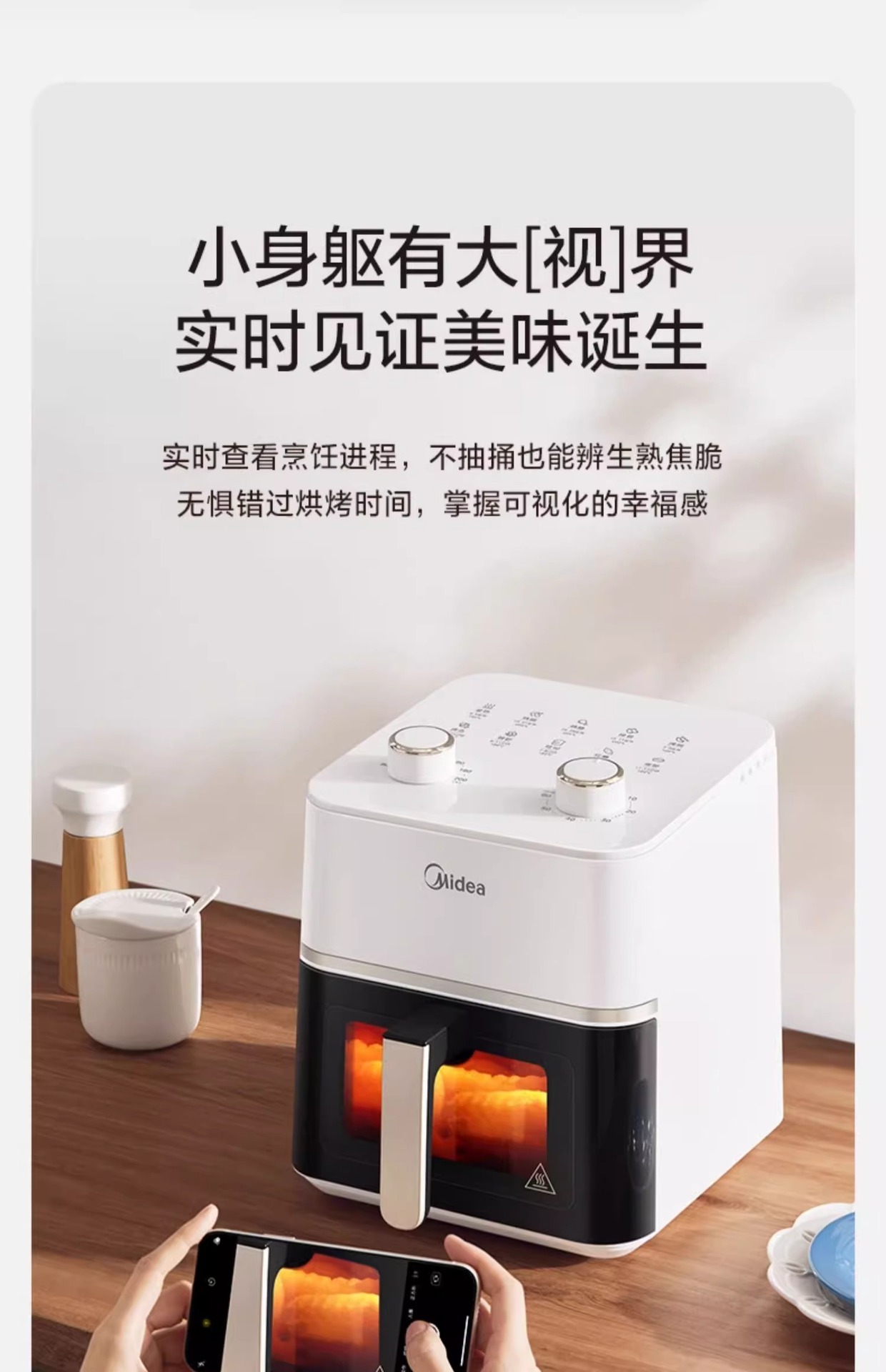 Midea 에어 프라이어 4.5L 가정용 새로운 시각적 전기 프라이팬 뒤집기없는 요리 전기 오븐 KZE45T87스토어 가기