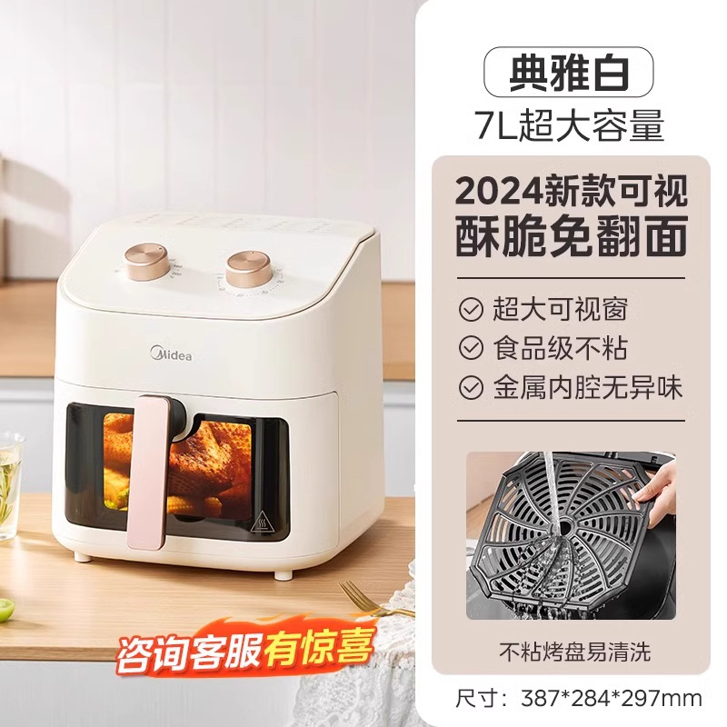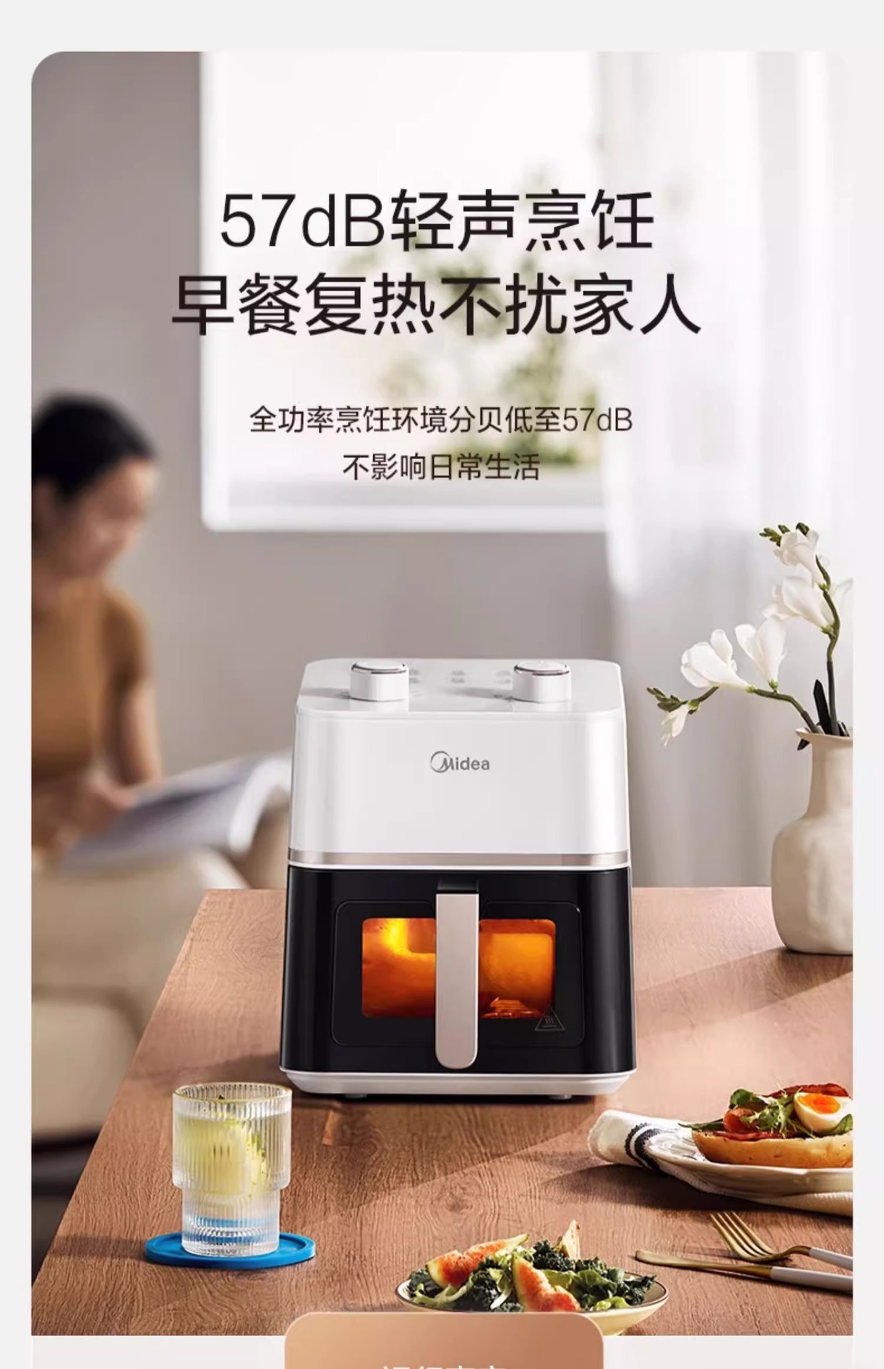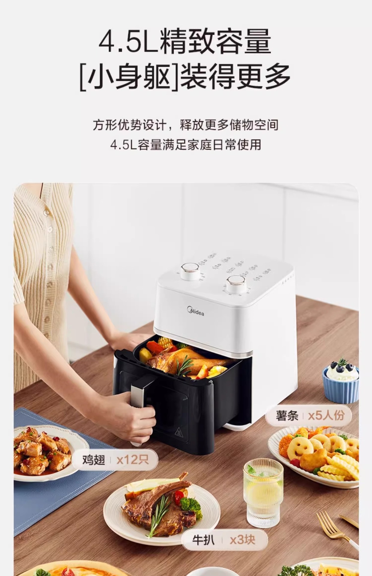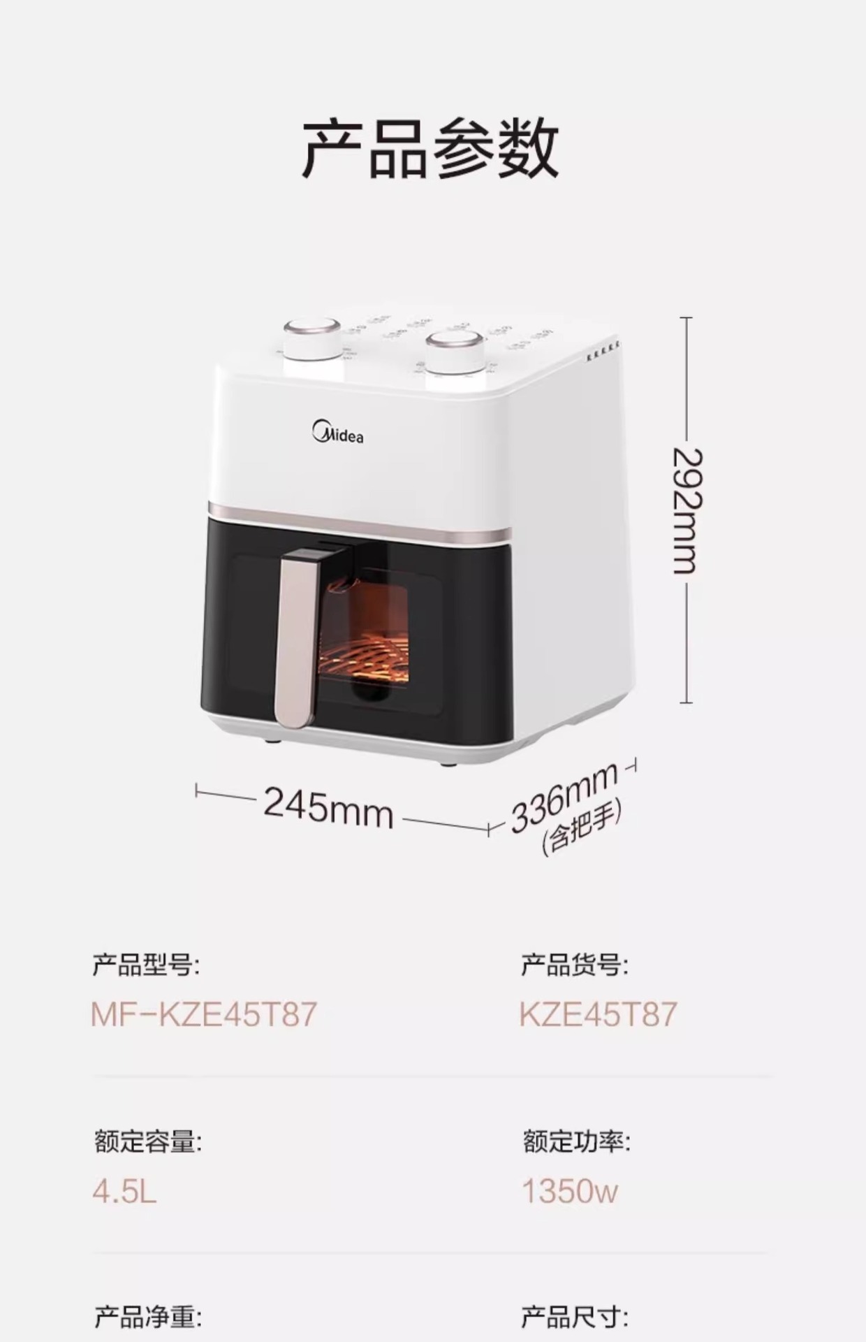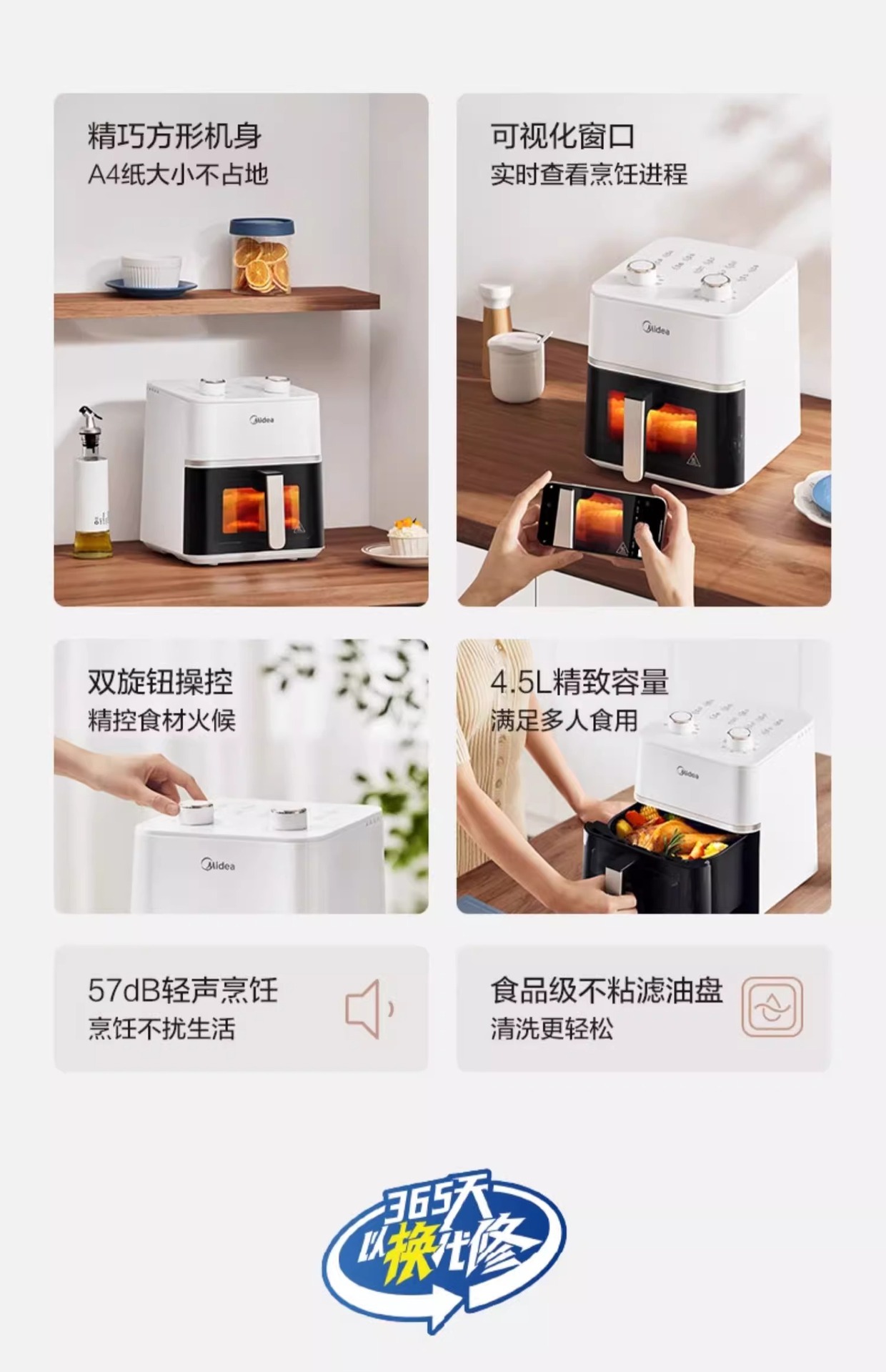 Midea 에어 프라이어 4.5L 가정용 새로운 시각적 전기 프라이팬 뒤집기없는 요리 전기 오븐 KZE45T87스토어 가기