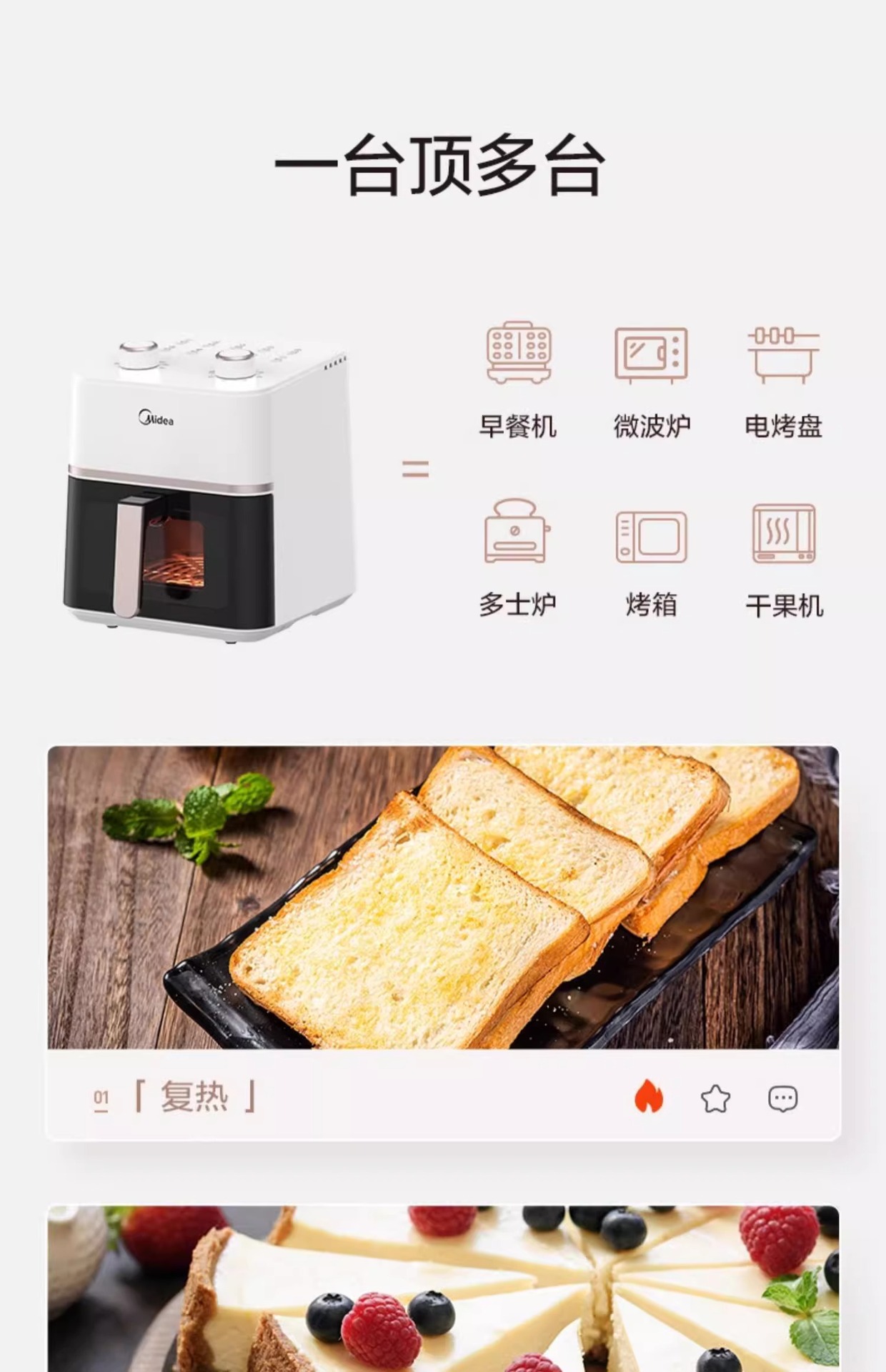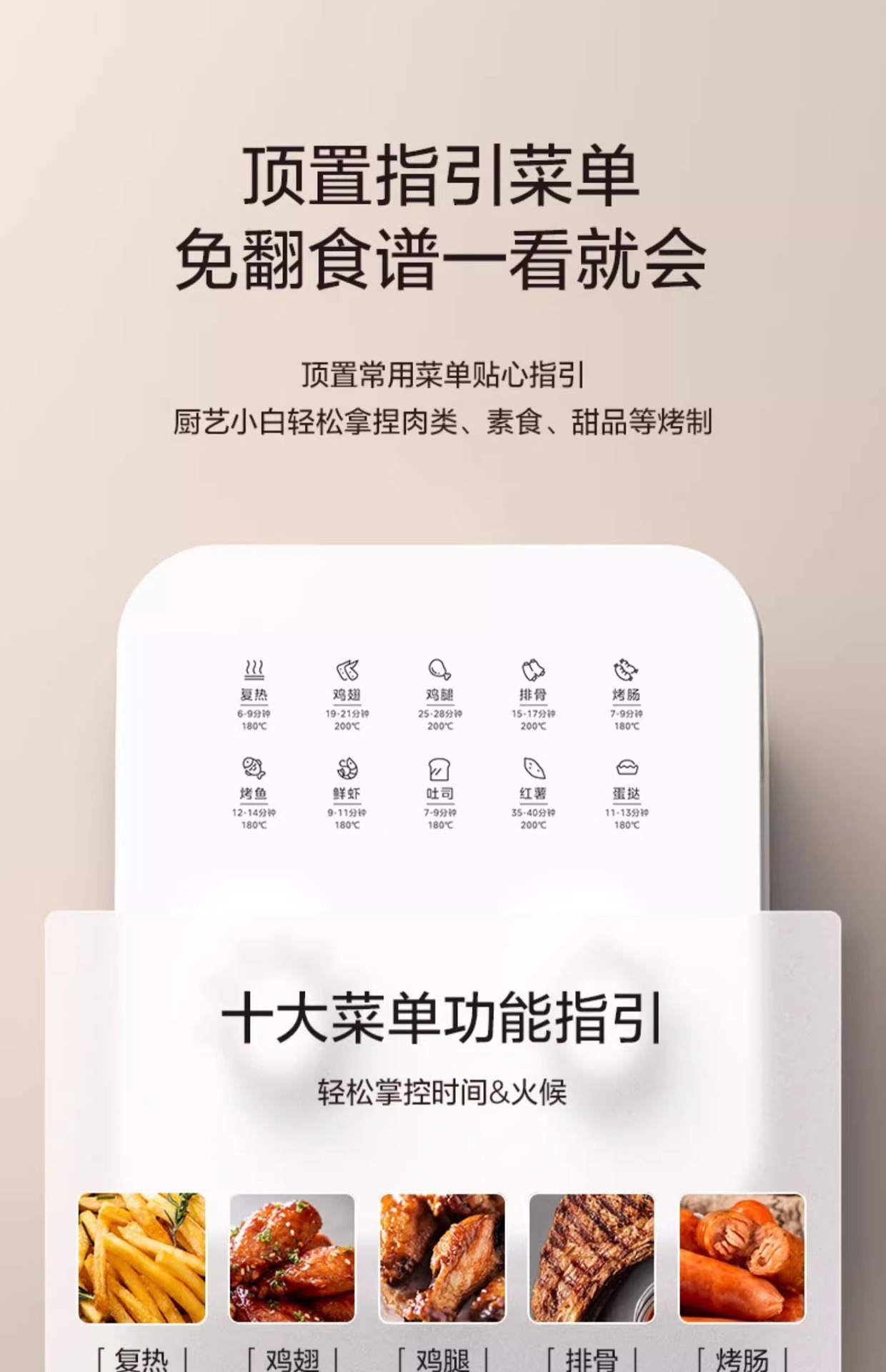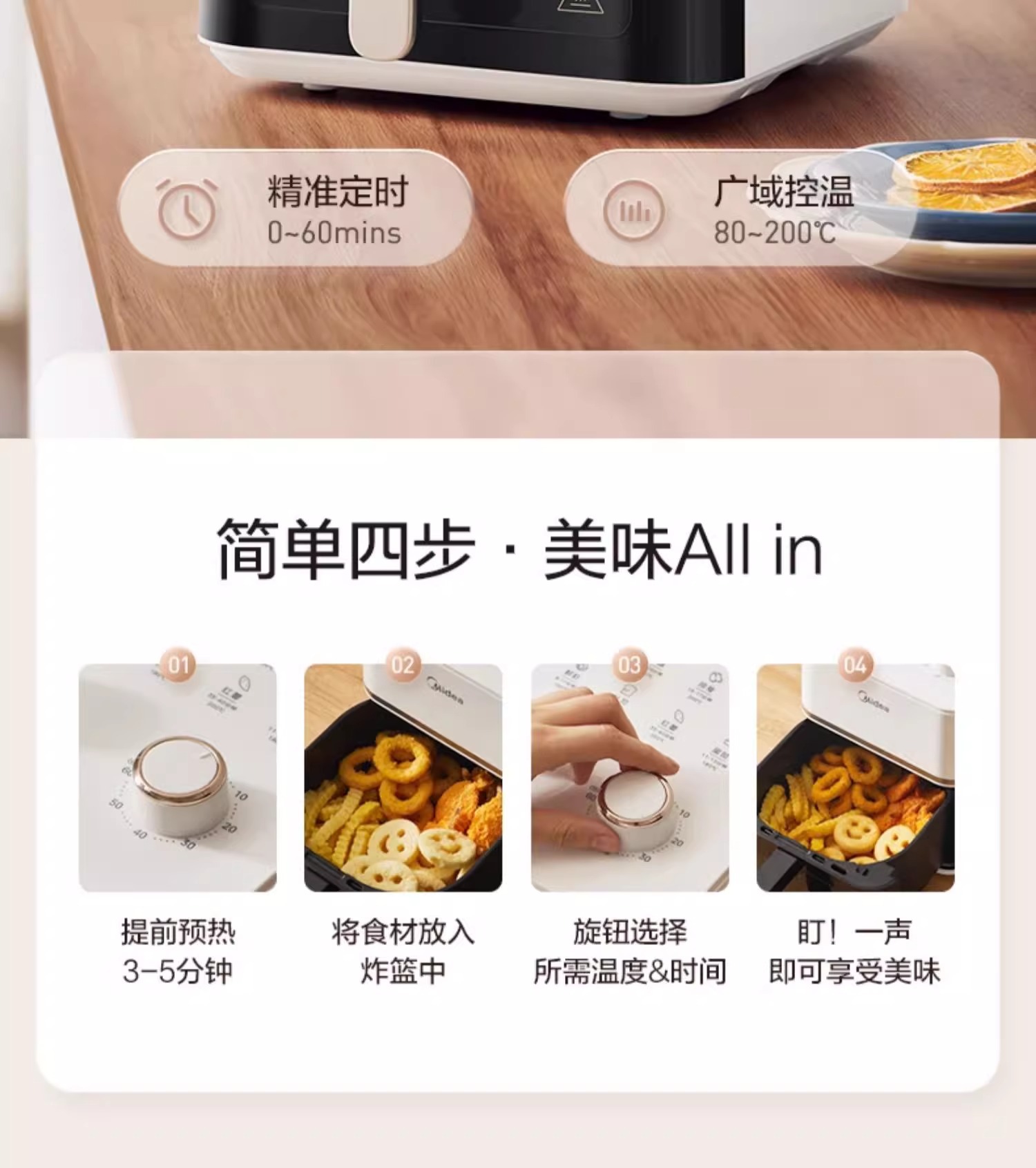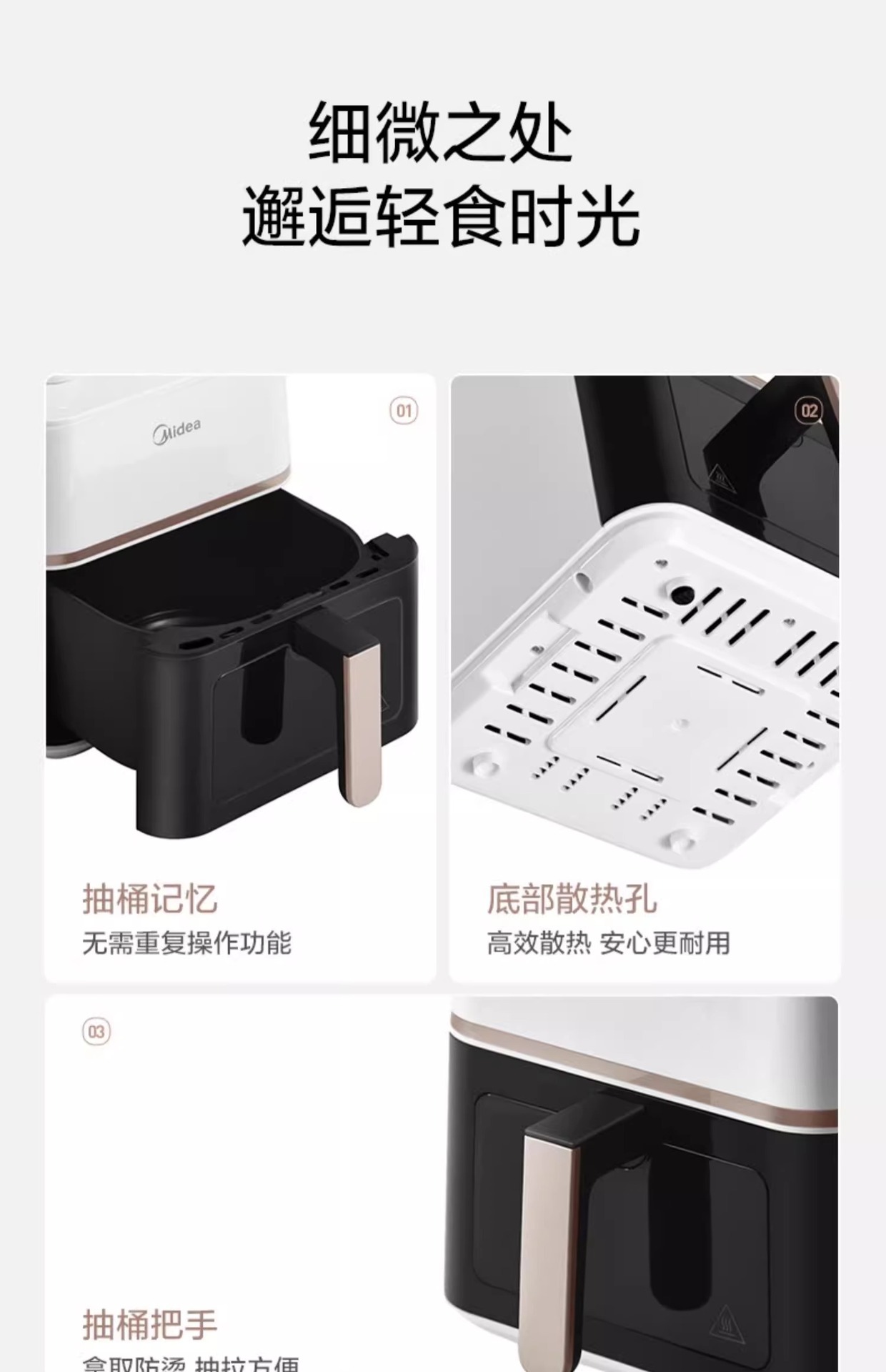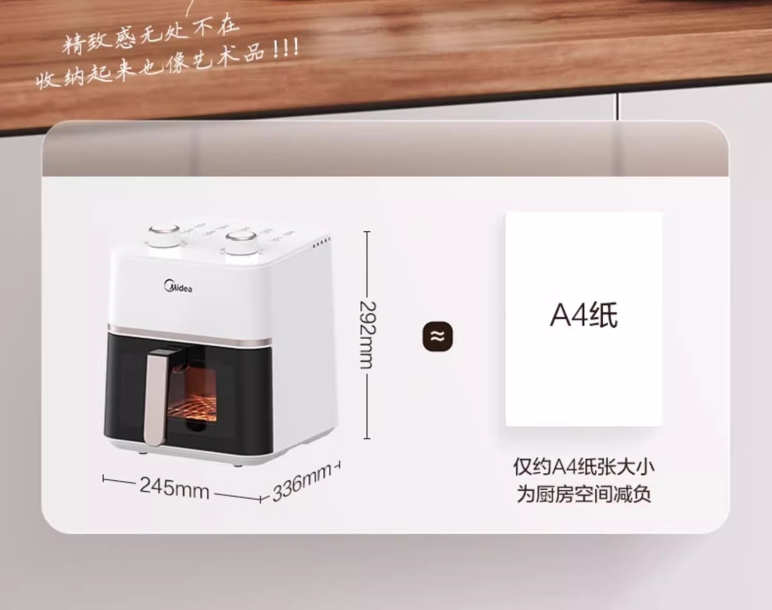 Midea 에어 프라이어 4.5L 가정용 새로운 시각적 전기 프라이팬 뒤집기없는 요리 전기 오븐 KZE45T87스토어 가기