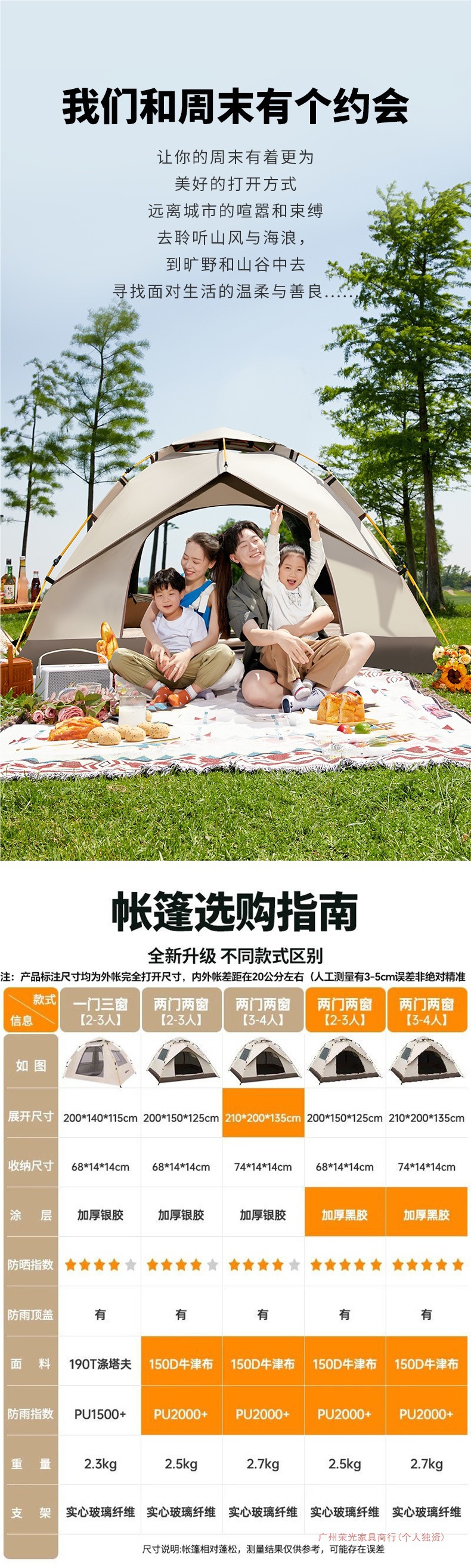3~4인 가족을 위한 완전 자동 빠른 설치 및 설치가 필요 없는 비바람에 견디는 차양 해변 캠핑 두꺼운 텐트 세트스토어 가기