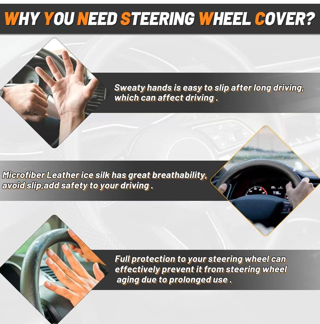 새로운 얼음 실크 자동차 핸들 커버, 모든 계절에 보편적, 통기성, 국경 간 인기 판매 마이크로 화이버 비스코스 가죽