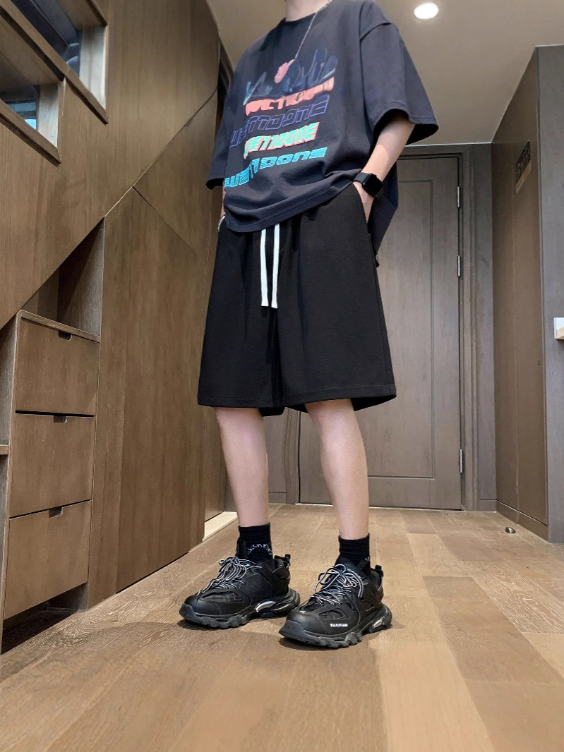 2025 뉴 아메리칸 레트로 캐주얼 트렌디 브랜드 반바지 남성 여름 대형 루즈 와이드 레그 팬츠 스포츠 캐주얼 바지스토어 가기