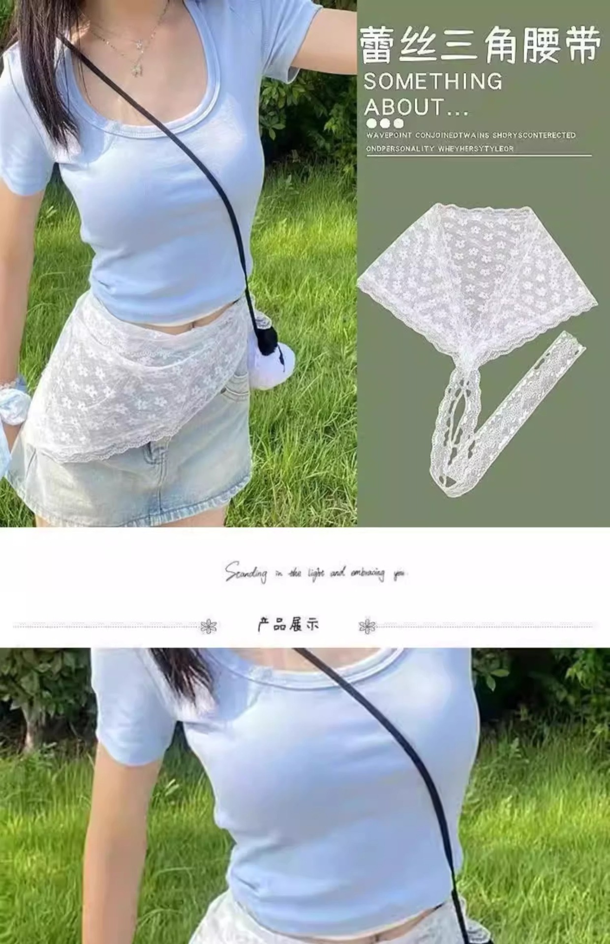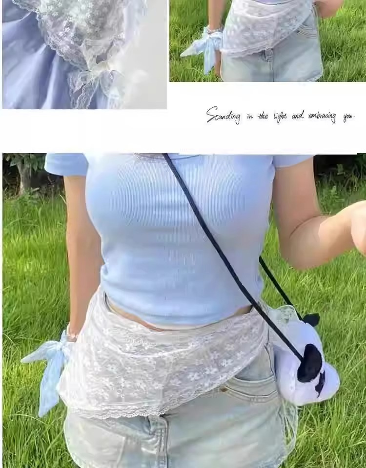 [레이어드하기 좋은 아이템] 프렌치 레이스 삼각 스카프, 목가적 스타일의 벨트 스커트, 스위트 메쉬 커튼, 겸용 헤드스카프