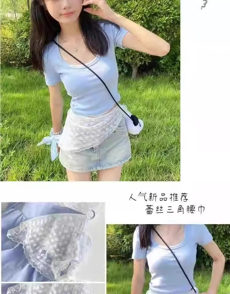 [레이어드하기 좋은 아이템] 프렌치 레이스 삼각 스카프, 목가적 스타일의 벨트 스커트, 스위트 메쉬 커튼, 겸용 헤드스카프스토어 가기
